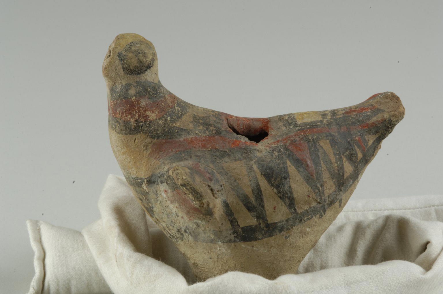 Coptic. Bird, 313–642 C.E.. Terracotta, pigment, 4 1/2 x 2 3/8 x 7/8 in. (11.5 x 6 x 2.2 cm). Brooklyn Museum, Charles Edwin Wilbour Fund, 37.1560E. (Photo: Brooklyn Museum (in collaboration with Index of Christian Art, Princeton University))