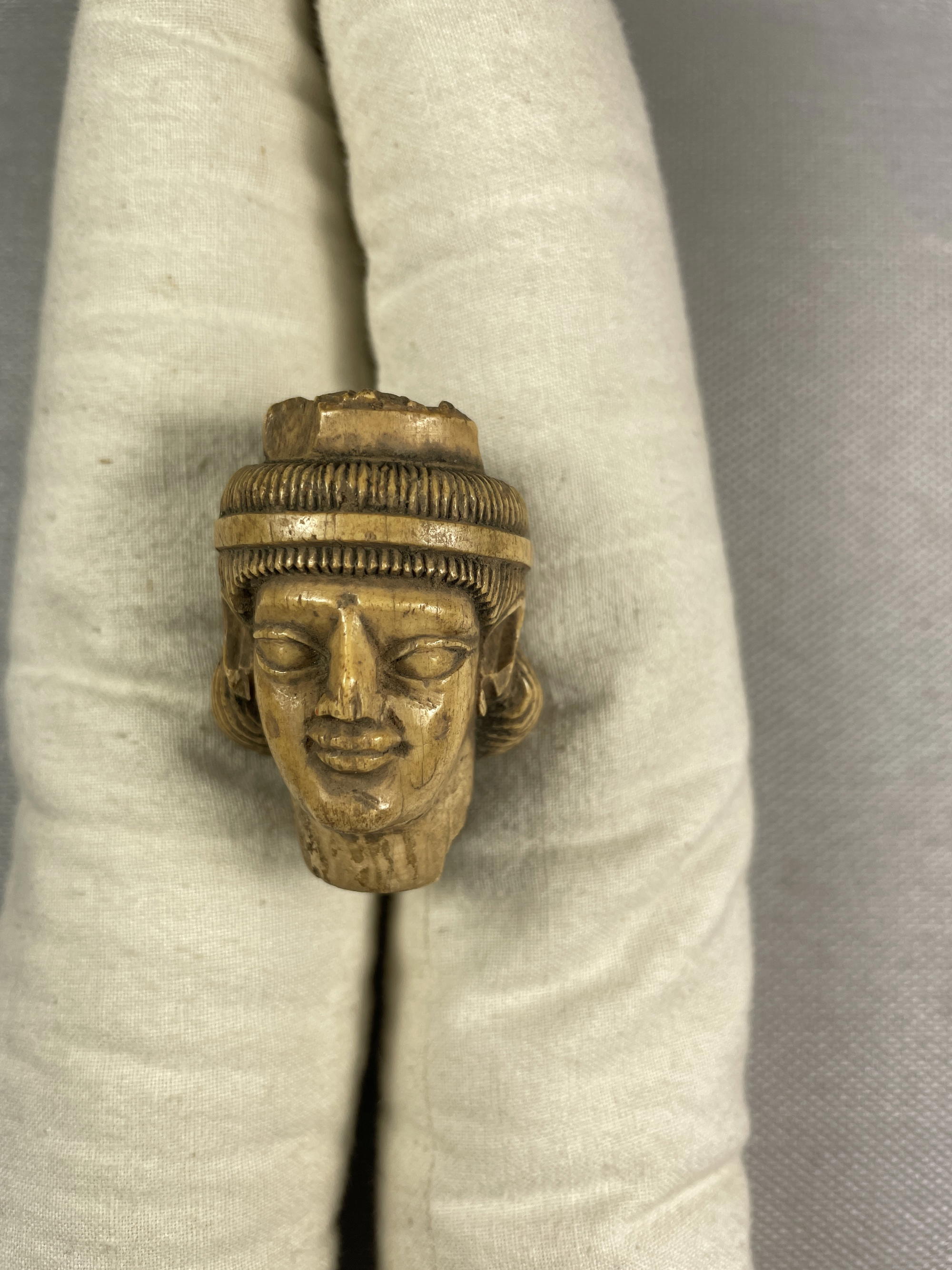 Assyrian. Goddess Nin-har-sag?, 7th–9th century B.C.E.. Ivory, 1 3/4 × 1 1/4 × 1 1/4 in. (4.5 × 3.2 × 3.2 cm). Brooklyn Museum, Charles Edwin Wilbour Fund, 37.1694E. (Photo: Brooklyn Museum)