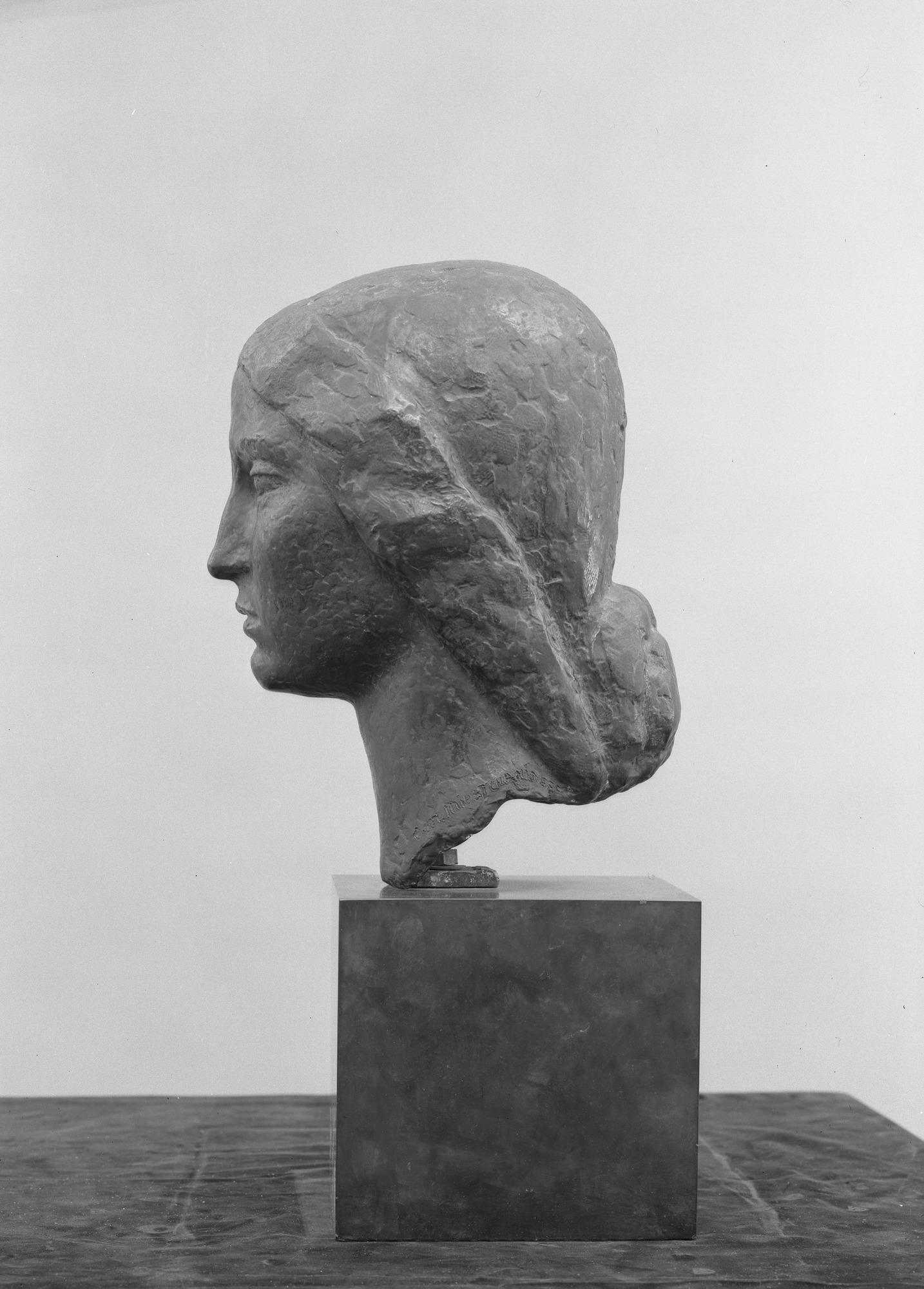 Oscar Miestchaninoff (American, born Russia, 1886–1956). Head of a Young Bulgarian, 1920. Bronze with stone base, 19 3/8 x 7 1/2 x 9 3/4 in. (49.2 x 19.1 x 24.8 cm). Brooklyn Museum, Gift of Mrs. Oscar Miestchaninoff, 58.183. (Photo: Brooklyn Museum)