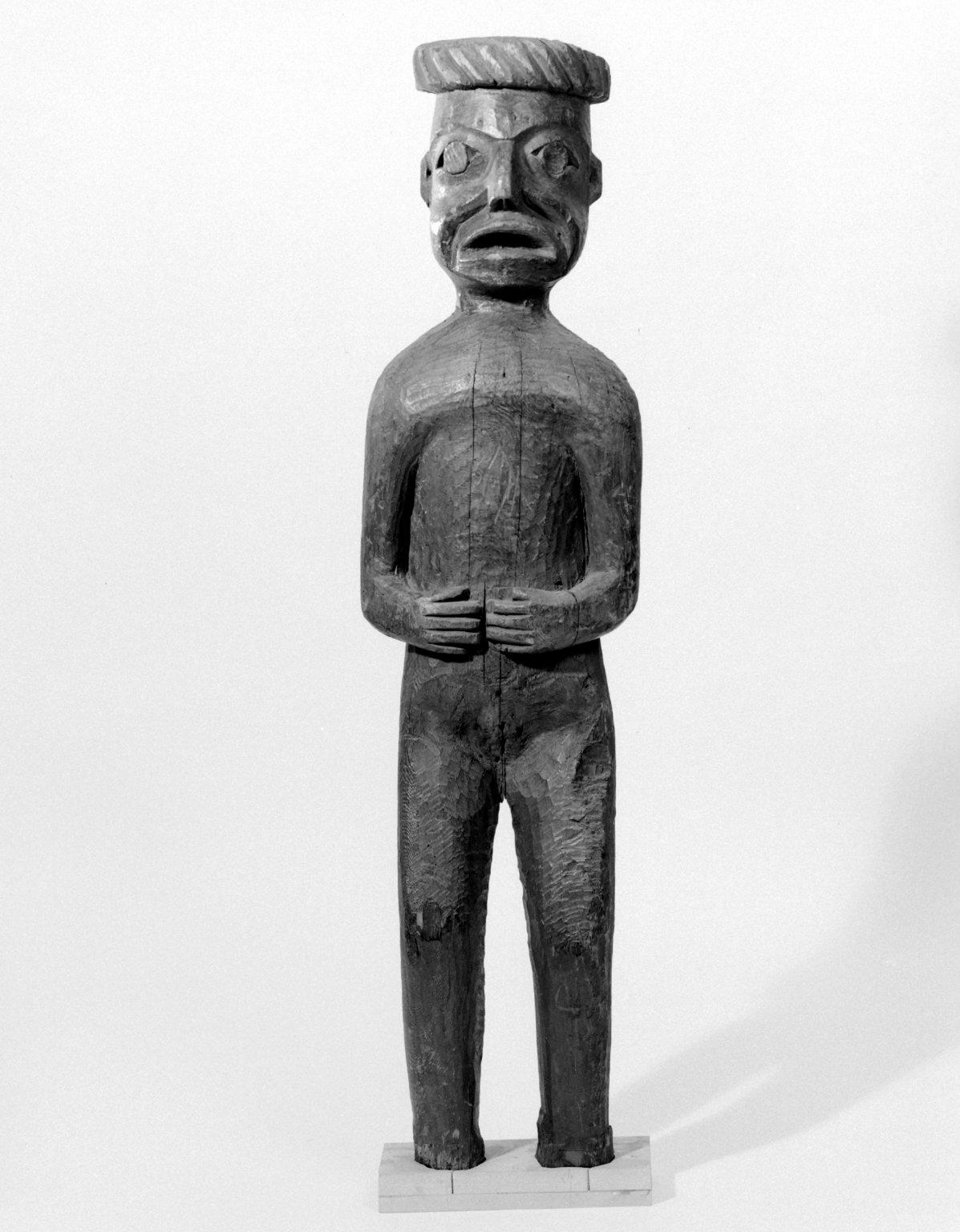 Gwa'sala Kwakwaka'wakw. Standing Potlatch Figure, late 19th century. Wood, 60 11/16 x 14 3/16 x 5 1/2 in. (154.1 x 36 x 14 cm). Brooklyn Museum, Brooklyn Museum Collection, X1118.2. (Photo: Brooklyn Museum)