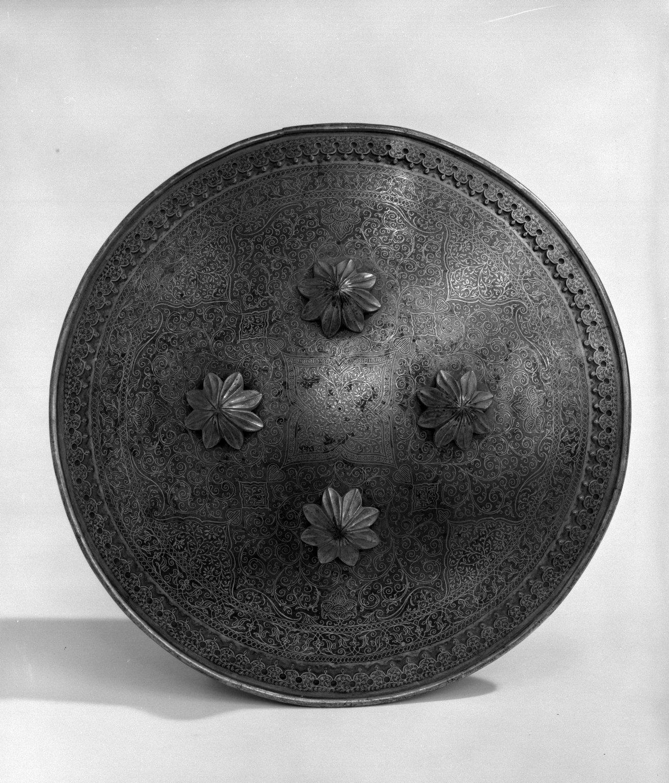 Circular Shield, Steel inlaid with gold, 12 in. (diam.) (30.5 cm). Brooklyn Museum, Brooklyn Museum Collection, X743.1. (Photo: Brooklyn Museum)