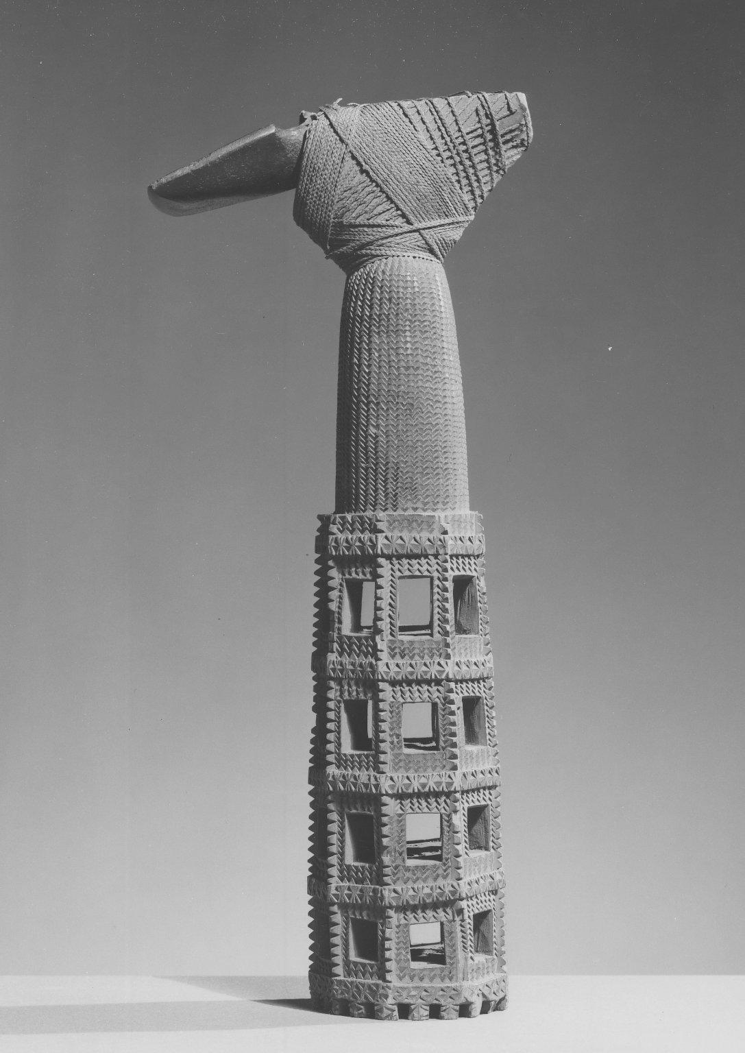 Mangaian. Ceremonial Adze (Ruatangaeo), Wood, stone, sennit, hide, 14 1/2 in. (36.8 cm). Brooklyn Museum, Brooklyn Museum Collection, X839.4. (Photo: Brooklyn Museum)