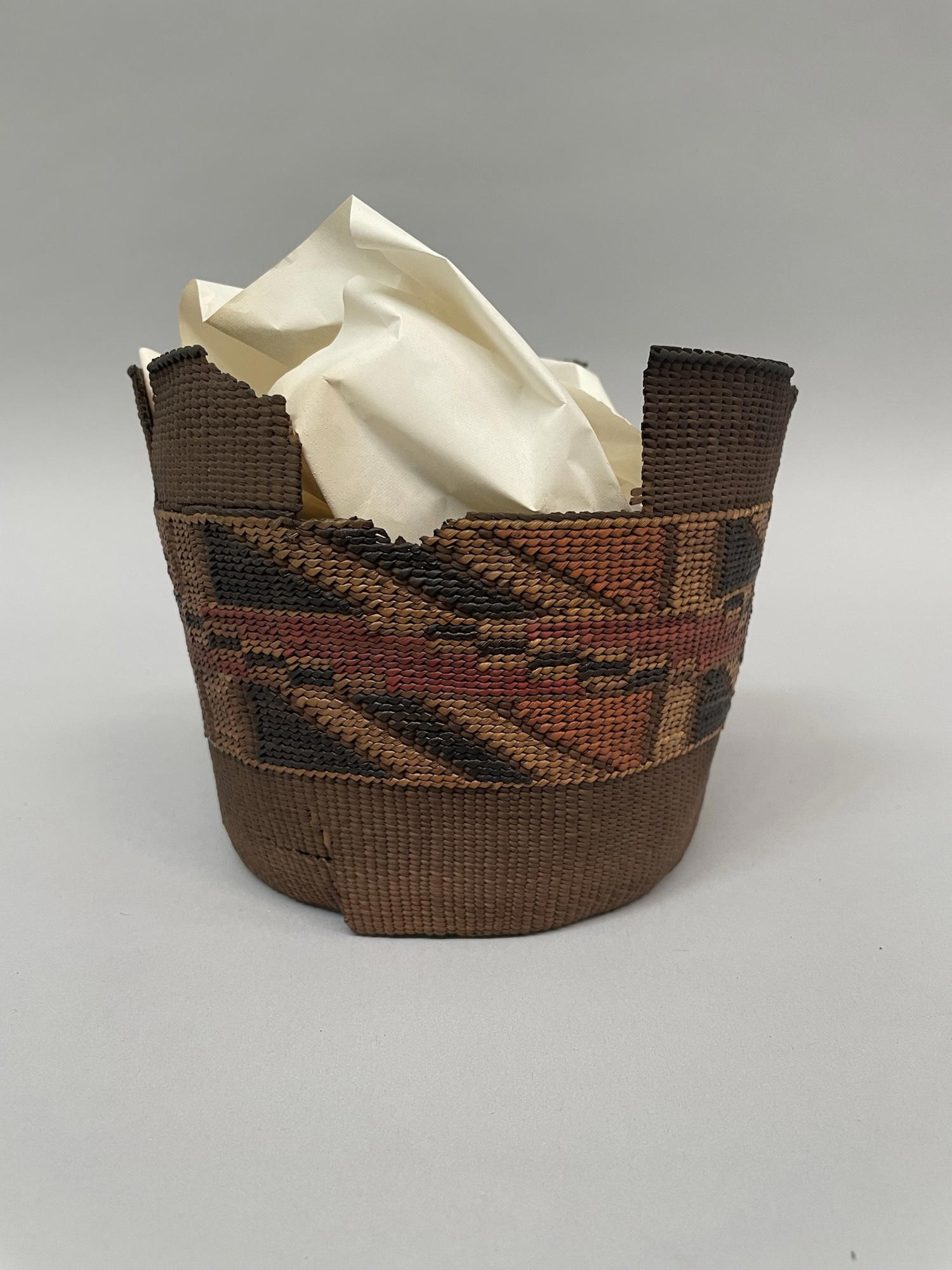 Tlingit. Twined Basket with Braided Rim, late 19th–early 20th century. Spruce root, grass, dye, 4 3/4 x 6 in. (12.1 x 15.2 cm). Brooklyn Museum, Brooklyn Museum Collection, X854.32. (Photo: Brooklyn Museum)