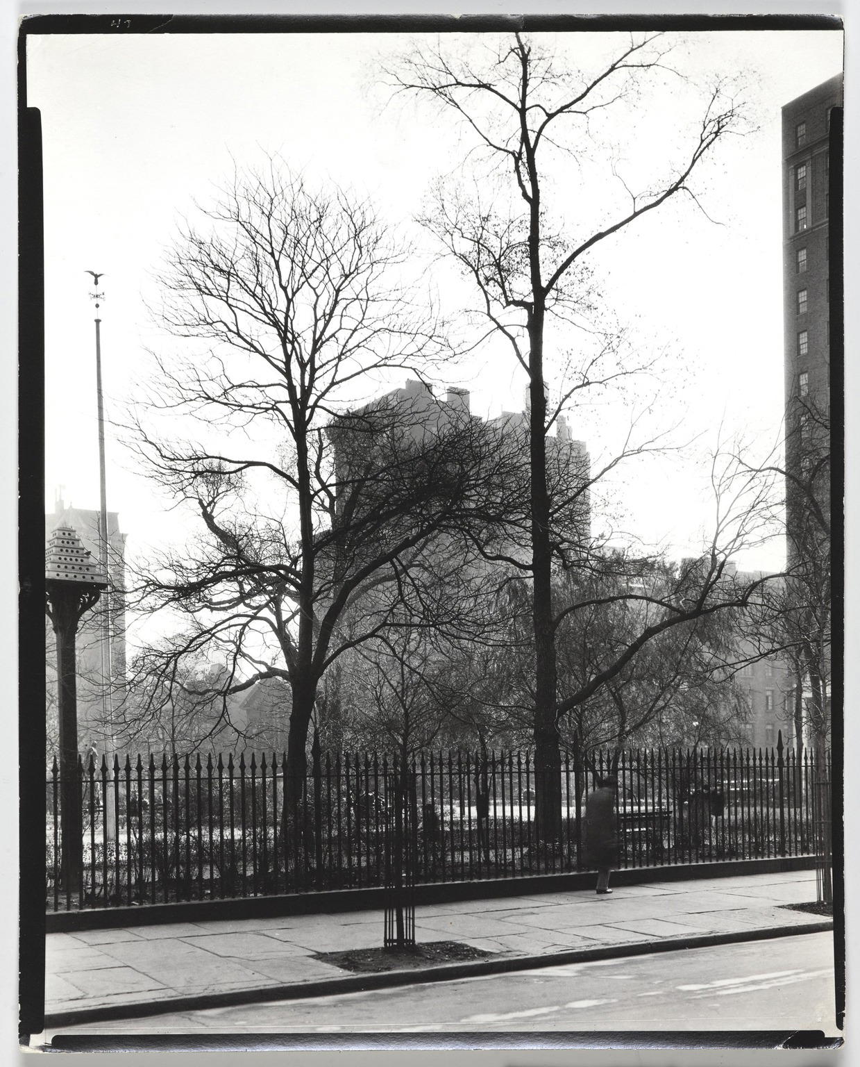 Berenice Abbott (American, 1898–1991). Gramercy Park, West Side, Looking S.E., November 27, 1935. Gelatin silver print, sheet: 9 7/8 x 7 7/8 in. (25.1 x 20 cm). Brooklyn Museum, Brooklyn Museum Collection, X858.85.