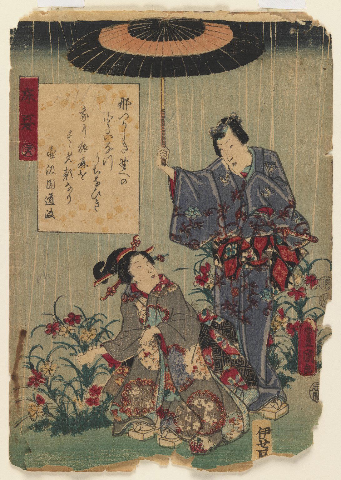 Utagawa Kunisada (Toyokuni III) (Japanese, 1786–1865). Ch. 26, Tokonatsu, from the series The Color Print Contest of a Modern Genji, 1852, 2nd month. Color woodblock print on paper, 10 x 7 in. (25.4 x 17.8 cm). Brooklyn Museum, Brooklyn Museum Collection, X864.3. (Photo: Brooklyn Museum)