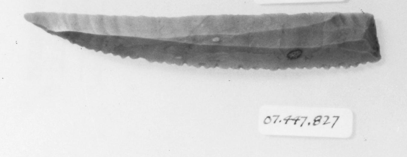 Pointed Sickle Blade, ca. 4400–2675 B.C.E.. Gray chert, 13/16 x 4 13/16 in. (2 x 12.3 cm). Brooklyn Museum, Charles Edwin Wilbour Fund, 07.447.827.