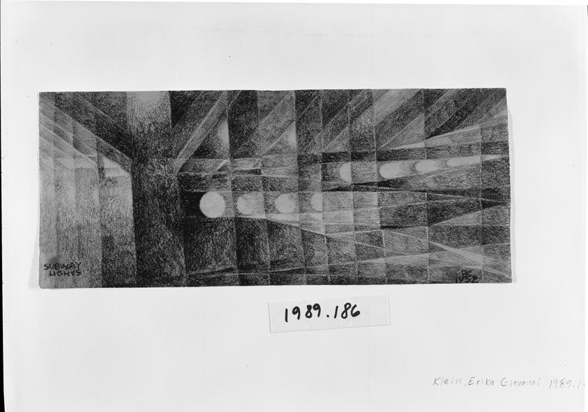 Erika Giovanna Klien. Subway Lights, 1952. Graphite and crayon on paper, 5 x 12 in. (12.7 x 30.5 cm). Brooklyn Museum, Gift of Rachel E. Adler, 1989.186. (Photo: Brooklyn Museum)