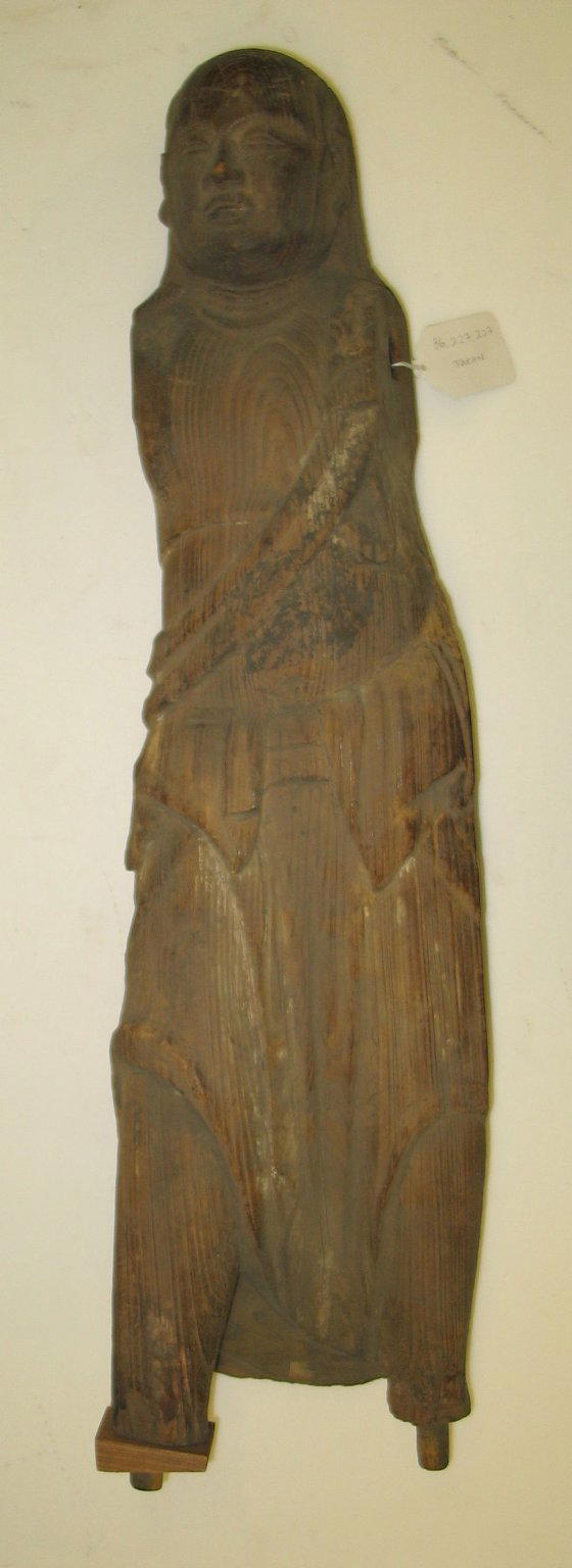 Seitaka Doji, one of Fudo's Attendants, 9th–10th century (possibly). Wood, 77.3 x 19 cm, 5 1/16 in. (77.3 x 19 x 12.8 cm). Brooklyn Museum, Gift of the Ernest Erickson Foundation, Inc., 86.227.207. (Photo: Brooklyn Museum)