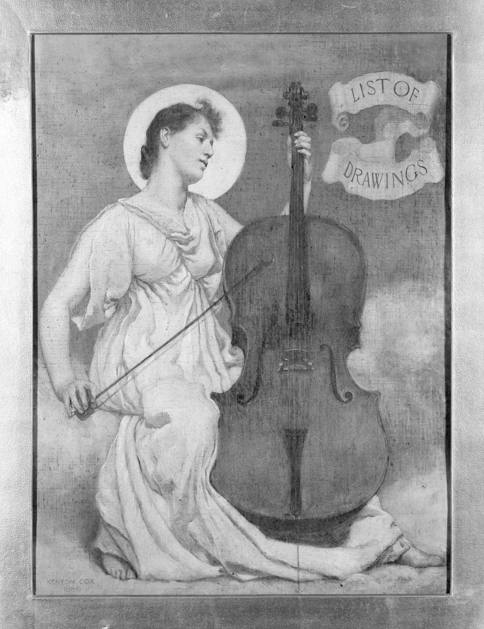 Kenyon Cox (American, 1856–1919). The Blessed Damozel: Frontispiece to List of Drawings, 1886. Oil, grisaille on canvas, Design: 19 5/8 x 14 3/4 in. Stretcher: 23 7/8 x 18 in. Brooklyn Museum, Gift of Mrs. Daniel Chauncey, 25.840d. (Photo: Brooklyn Museum)