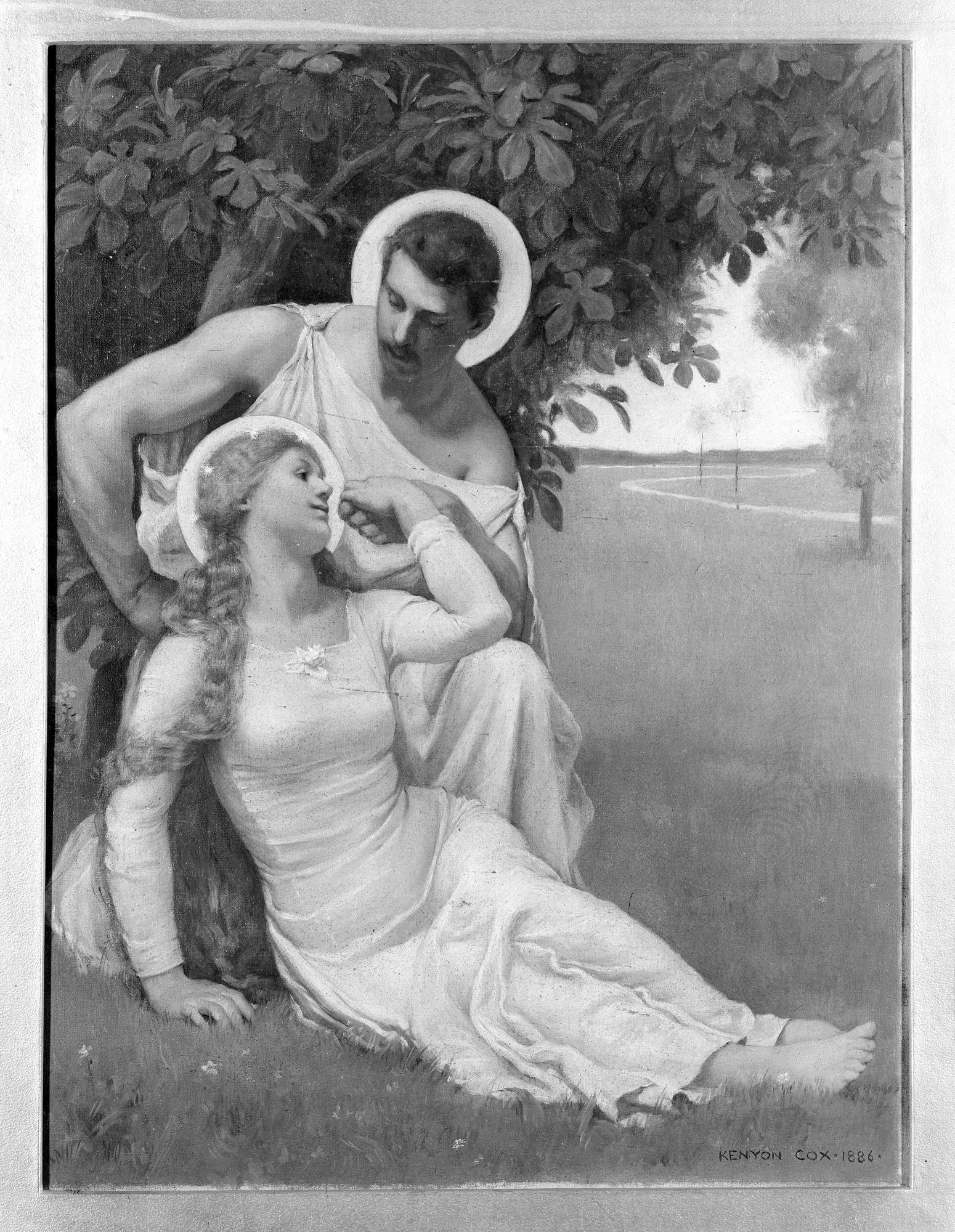 Kenyon Cox (American, 1856–1919). The Blessed Damozel: "We Two Will Lie I' the Shadow", 1886. Oil, grisaille on canvas, Design: 20 1/8 x 15 3/16 in. Stretcher: 24 x 18 1/16 in. Brooklyn Museum, Gift of Mrs. Daniel Chauncey, 25.840n. (Photo: Brooklyn Museum)