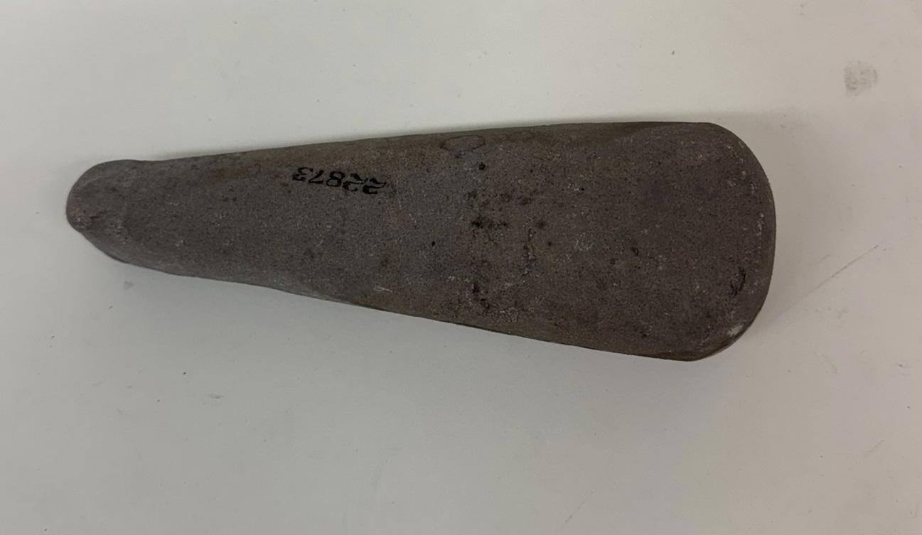 The accession number “22873” is inscribed in black ink on one face near the butt end.
