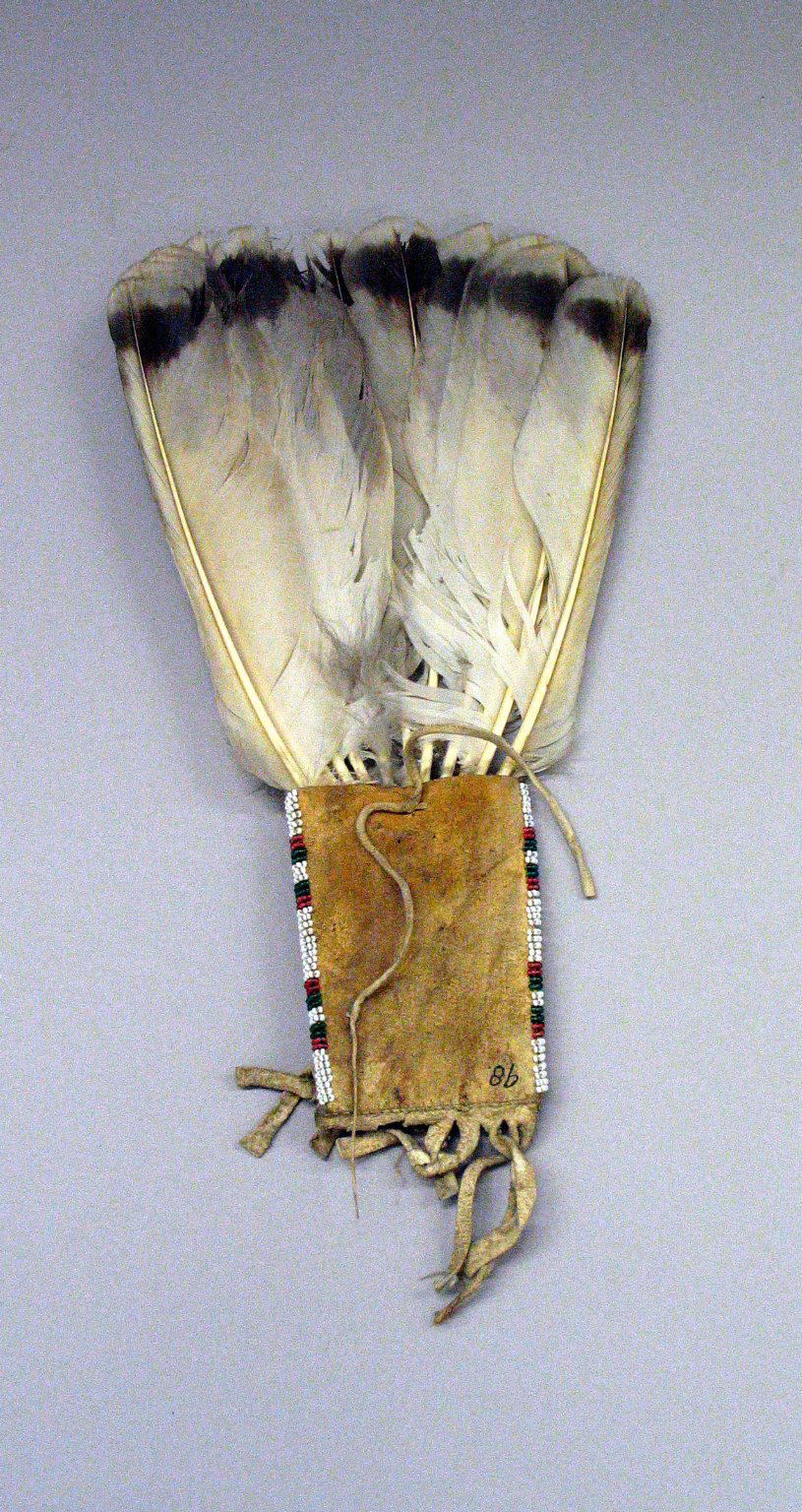 Osage. Fan, late 19th–early 20th century. Hide, eagle feather,porcupine quill, beads, pigment, 5 1/2 x 14 in. (14 x 35.6 cm). Brooklyn Museum, Museum Expedition 1911, Museum Collection Fund, 11.694.8987. (Photo: Brooklyn Museum)