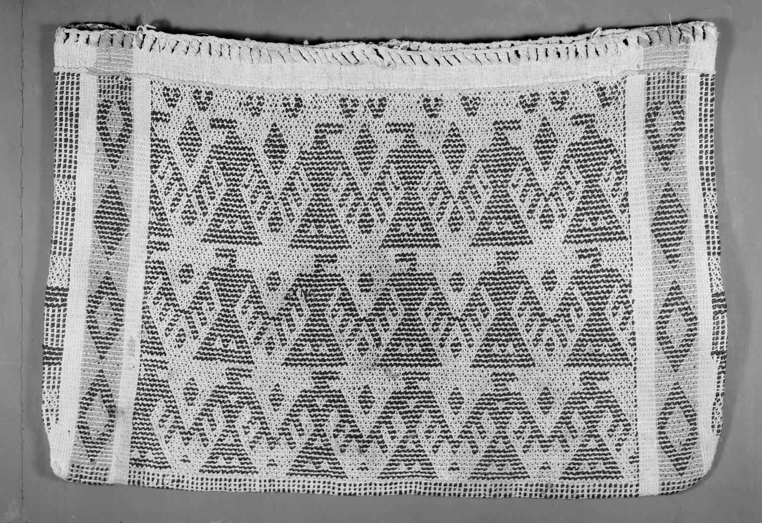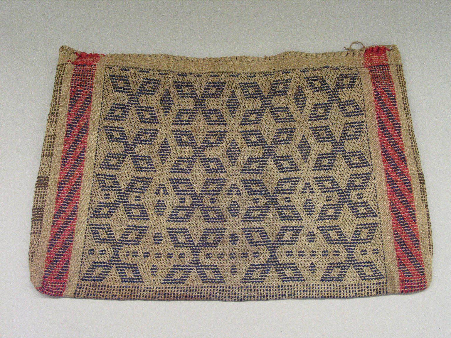 Hochunk; or Menominee. Woven Utility Bag with Thunderbird Design, late 19th century. Slippery elm, nettles, buffalo wool or hemp, dye, 11 13/16 x 22 1/16 in. (30 x 56 cm). Brooklyn Museum, Museum Expedition 1904, Museum Collection Fund, 04.297.6954. (Photo: Brooklyn Museum)