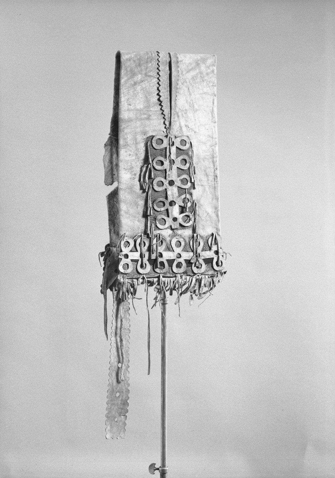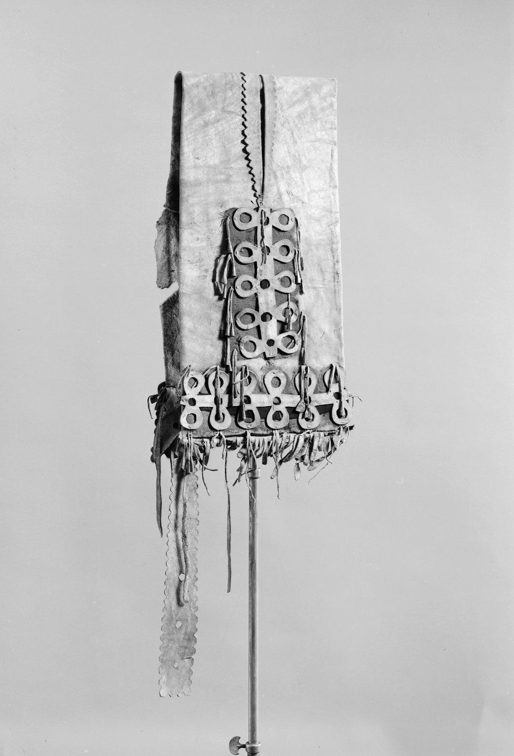 Possibly Effie and Montayo Alchesay. Saddle Bag, late 19th century. Hide, cotton, tin, 42 1/2 x 10 1/4in. (108 x 26cm) Other: 42 1/2 x 10 1/4in. (108 x 26cm). Brooklyn Museum, Museum Expedition 1907, Museum Collection Fund, 07.467.8459.2. (Photo: Brooklyn Museum)