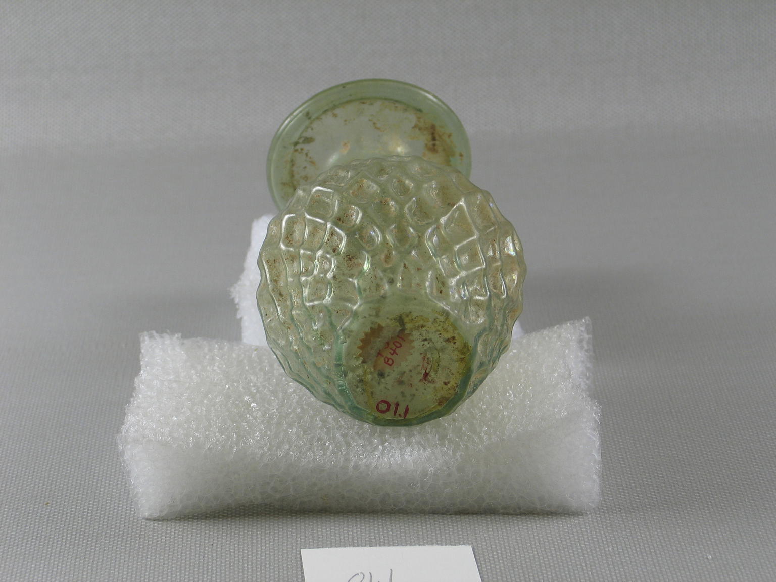 Roman; Syro-Palestinian. Sprinkler Bottle with Molded Lozenge Pattern, first half of 3rd century C.E.. Glass, 3 5/8 x Diam. 2 1/2 in. (9.2 x 6.4 cm). Brooklyn Museum, Gift of Robert B. Woodward, 01.1. (Photo: Brooklyn Museum)