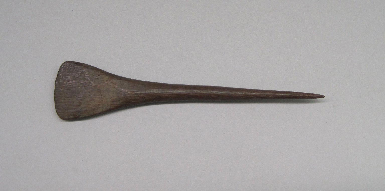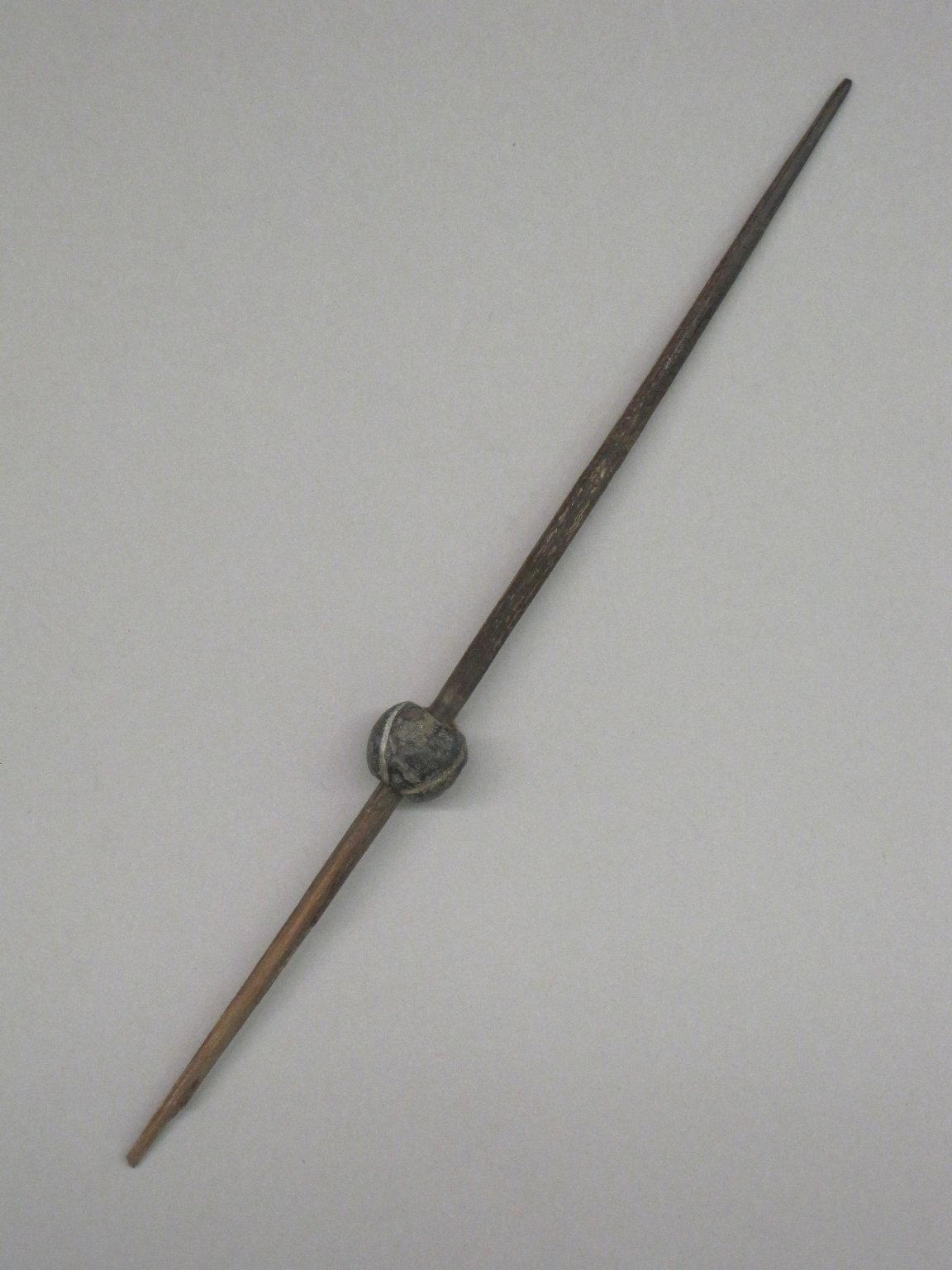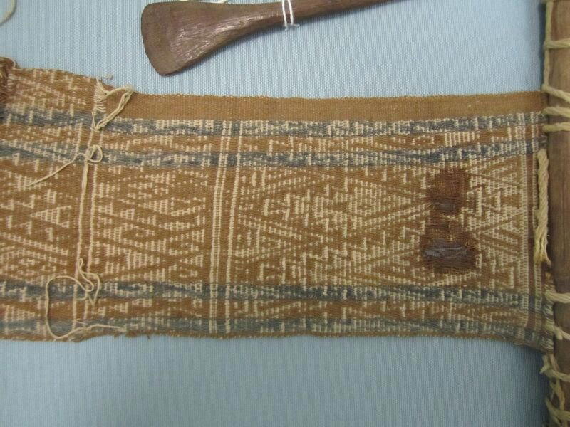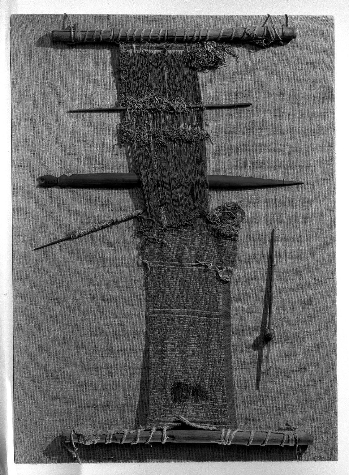 Possibly Chancay. Sampler Loom and Spindle, 1000–1532 (loom); 1000–1400 (spindle) (possibly). Wood, cotton, ceramic, 20 1/16 x 12 5/8in. (51 x 32cm) 7 1/2 x 12 5/8in. (19 x 32cm). Brooklyn Museum, Museum Collection Fund, 29.1312.12. (Photo: Brooklyn Museum)