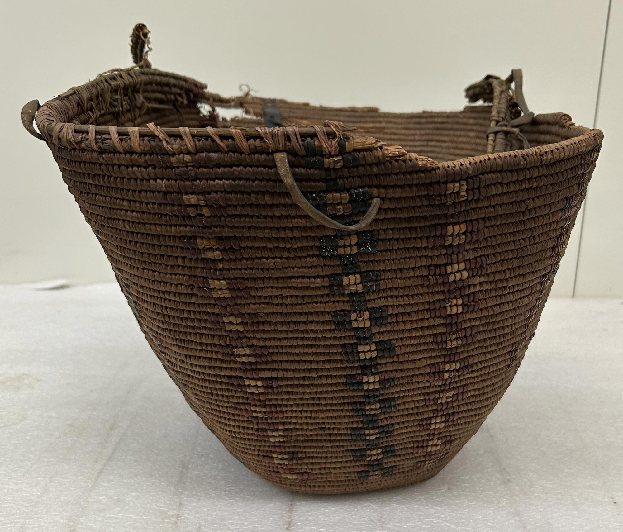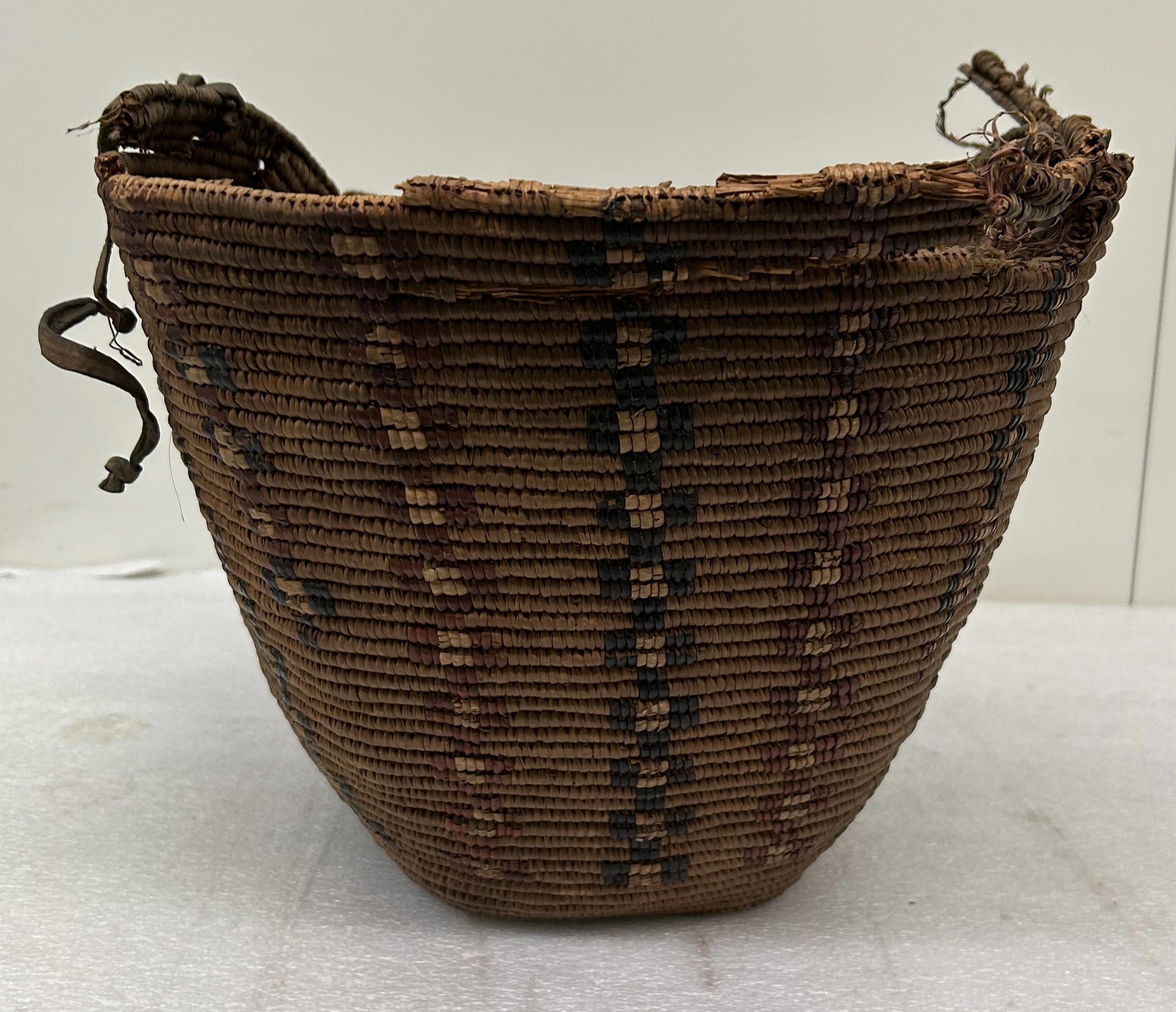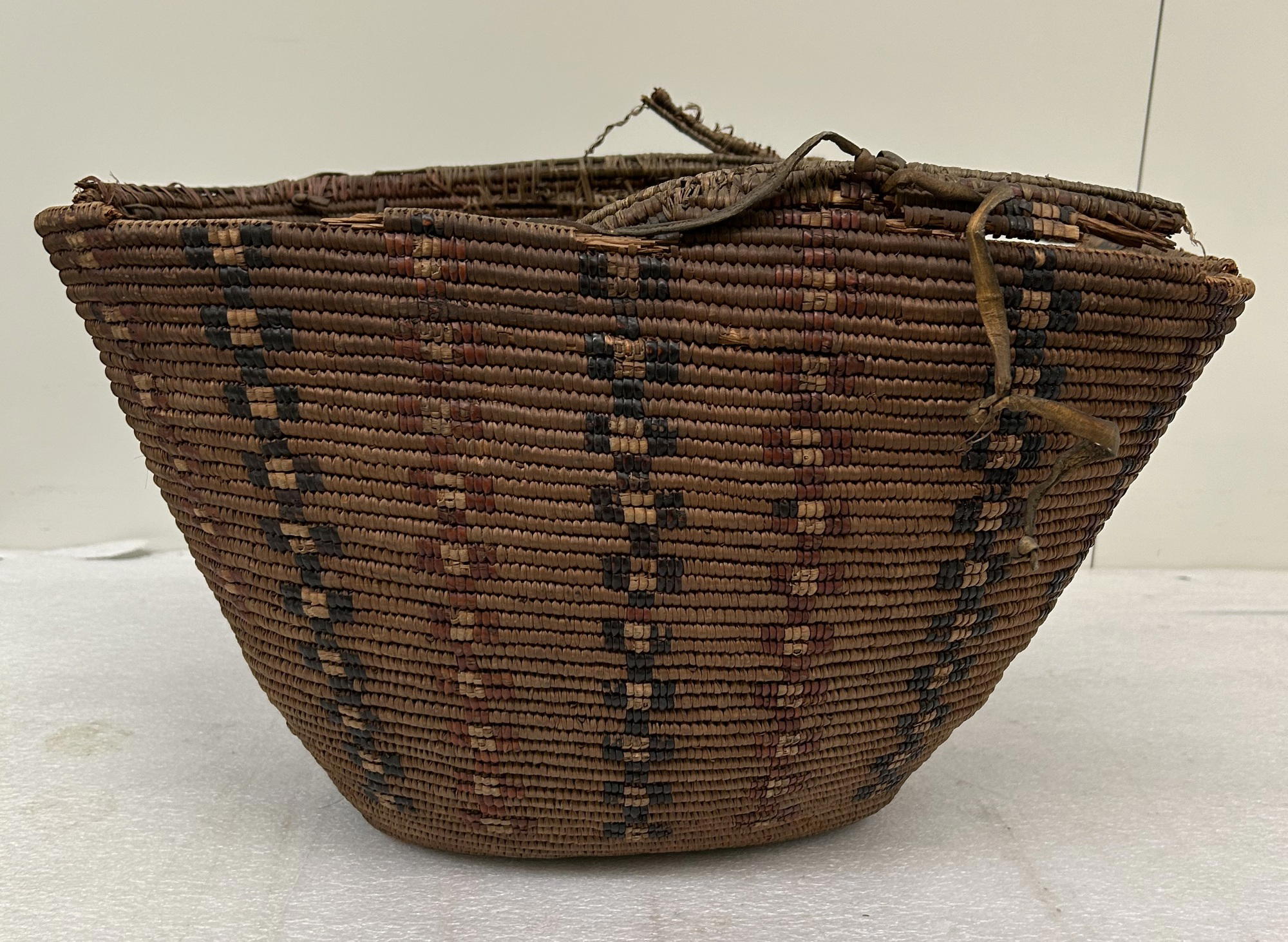 Canadian Inuit (unidentified); or Plateau (undentified). Basket, early 20th century. Plant fiber, hide, 11 7/16 × 19 7/8 in. (29 × 50.5 cm). Brooklyn Museum, Gift of Miss E.F. White, 32.1995. (Photo: Brooklyn Museum)