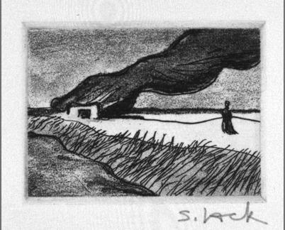 Stephen Lack (Canadian, born 1946). Burning Past, 1987. Etching and aquatint, Sheet: 9 x 8 in. (22.9 x 20.3 cm) Image: 1 1/2 x 2 1/8 in. (3.8 x 5.4 cm). Brooklyn Museum, Gift of Jonathan Seliger, 1990.237.18. © Stephen Lack. (Photo: Brooklyn Museum)