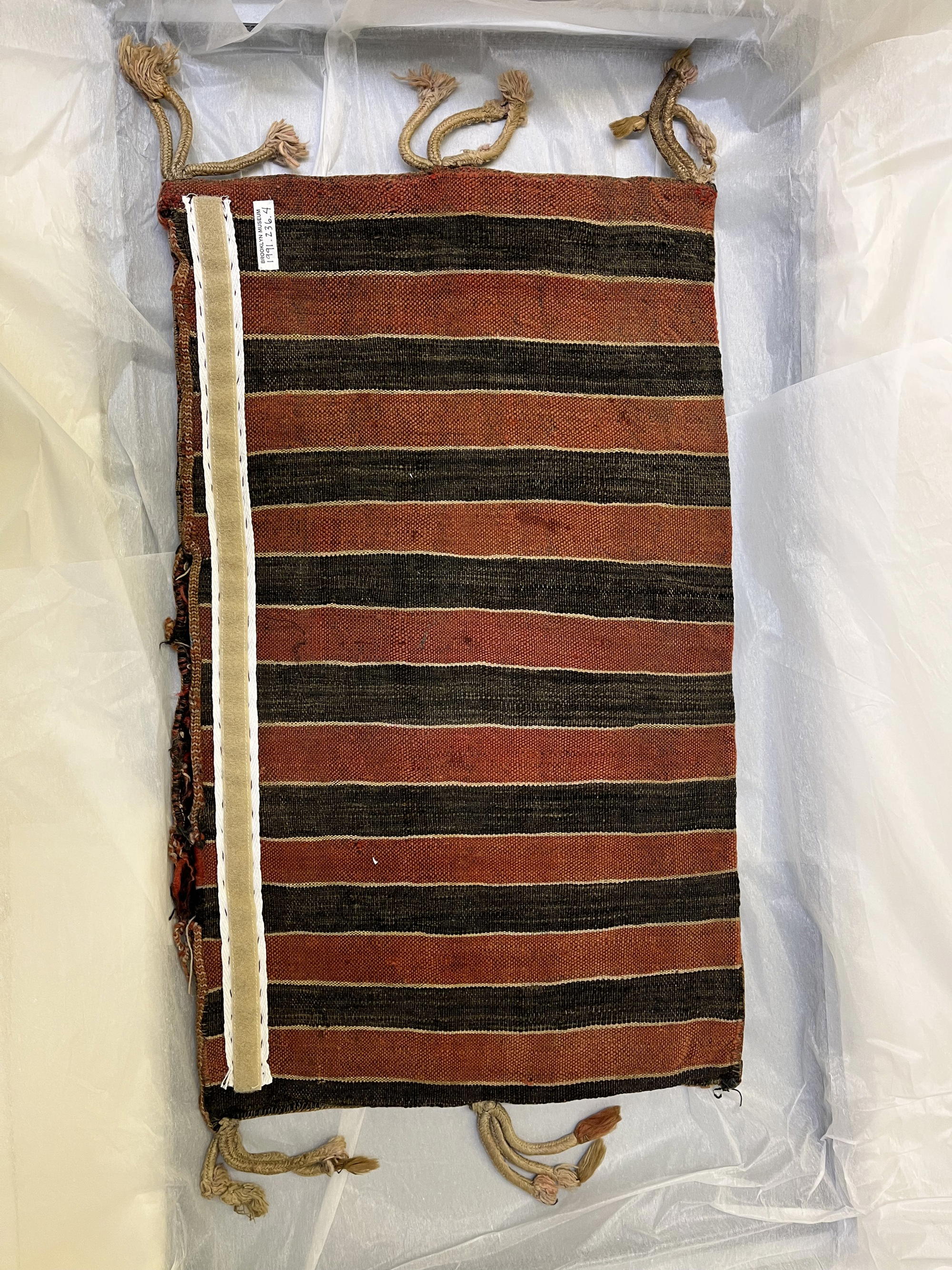 Ait Zemmour; Amazigh. Cushion Cover, mid–20th century. Wool, cotton brocade, 12 x 24in. (30.5 x 61cm). Brooklyn Museum, Gift of Dr. Virgil H. Bird, 1991.236.4. (Photo: Brooklyn Museum)