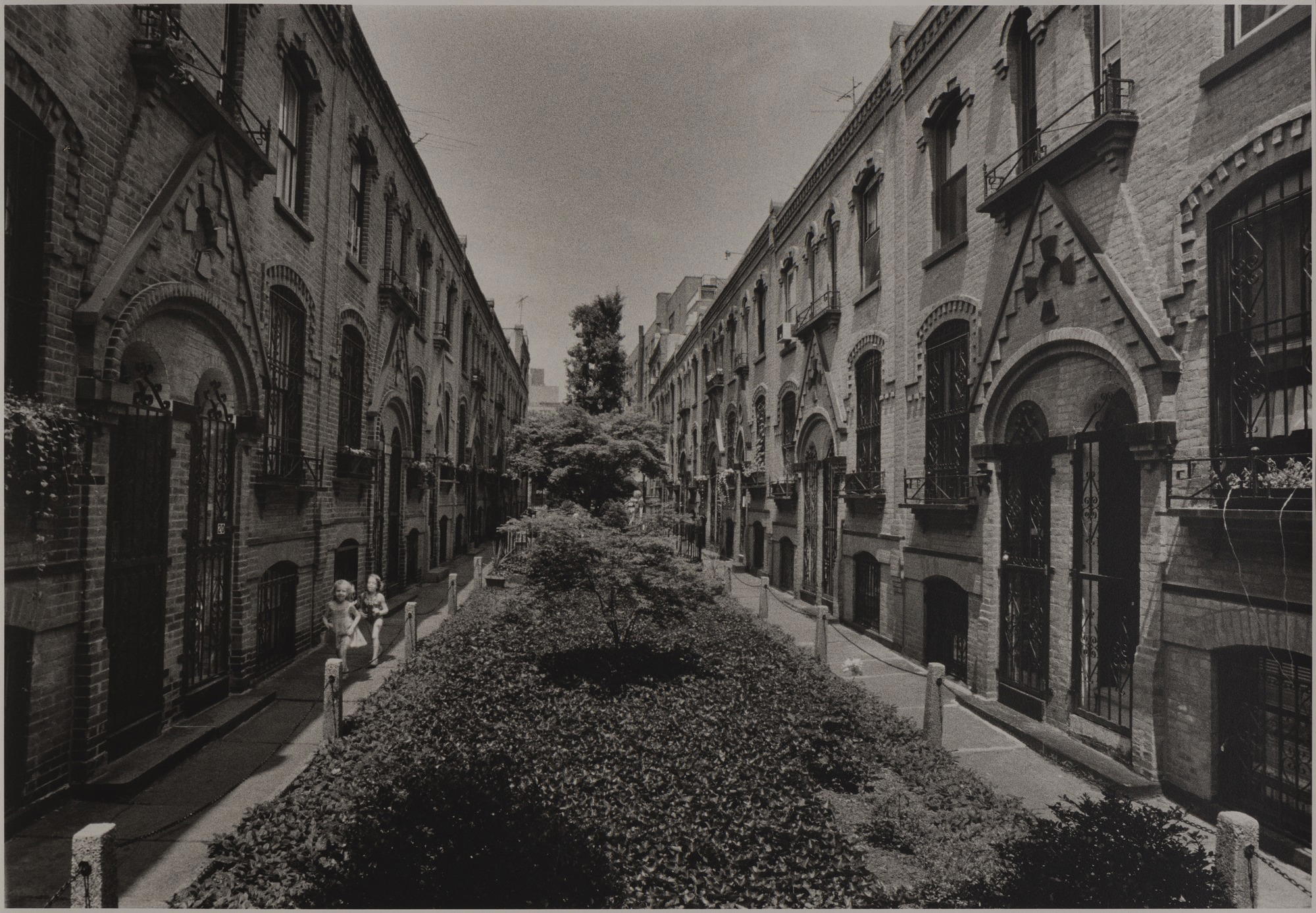 Tony Velez (American, 1946 – 2016). Warren Place Mews (Between Warren St. and Baltic St.) Cobble Hill, Brooklyn, NY, 1 of 20 from a Portfolio of 34, 1990. Gelatin silver print, 11 x 14in. (27.9 x 35.6cm) Other (Sheet): 11 x 14 in. (27.9 x 35.6 cm) Other (Image): 9 5/16 x 13 1/2 in. (23.7 x 34.3 cm). Brooklyn Museum, Gift of Victor H. Kempster, 1991.306.1. © Tony Velez. (Photo: Brooklyn Museum)
