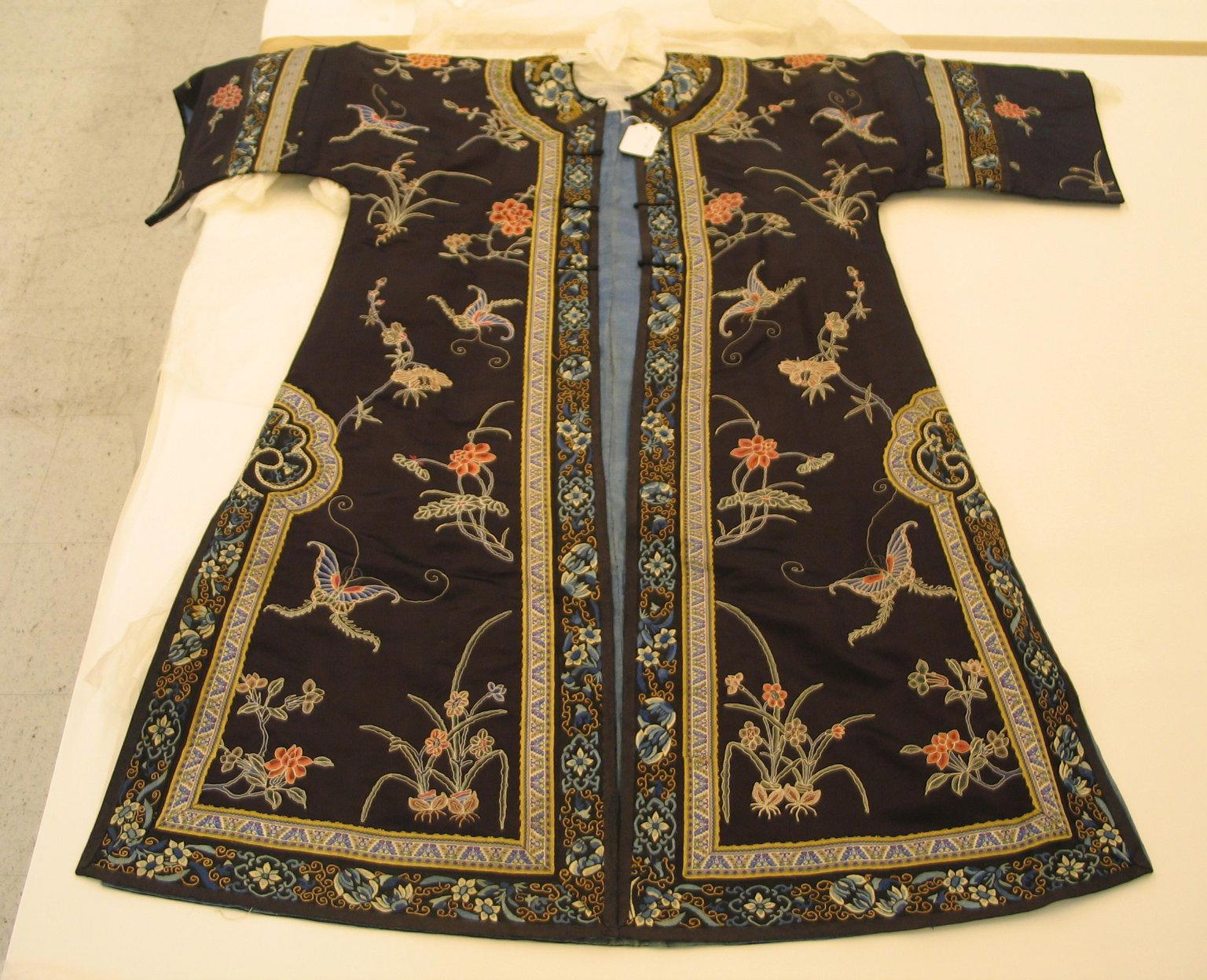 Lady's Robe, late 19th–early 20th century. Silk satin, gold-wrapped thread embroidery, cord toggle buttons, 50 x 50 3/8 in. (127 x 128 cm) width at waist: 25 9/16 in. (65 cm). Brooklyn Museum, Gift of Mr. and Mrs. Jerome J. Stenz, 1992.30.1. (Photo: Brooklyn Museum)