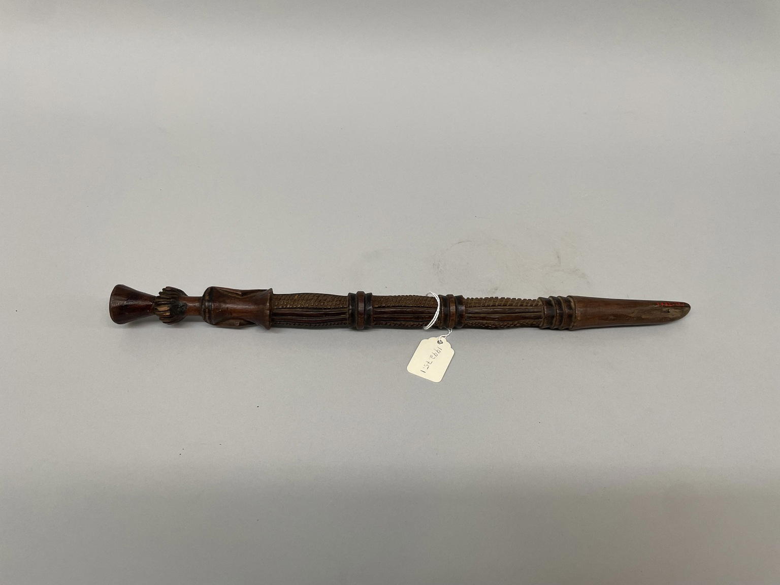 Ndengese. Staff, 20th century. Wood, 15 5/8 x 1 1/8 x 1 1/4 in. (39.7 x 2.9 x 3.2 cm). Brooklyn Museum, Gift of Drs. Israel and Michaela Samuelly, 1992.75.1. (Photo: Brooklyn Museum)