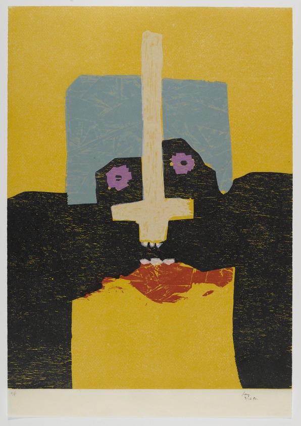 David Hare (American, born Vienna, 1917–1992). Untitled, 1992. Woodcut on paper, sheet: 25 3/4 x 17 3/4 in. (65.4 x 45.1 cm) image: 23 7/8 x 17 3/4 in. (60.6 x 45.1 cm). Brooklyn Museum, Gift of Walter W. Sawyer, 1992.185.5. (Photo: Brooklyn Museum)