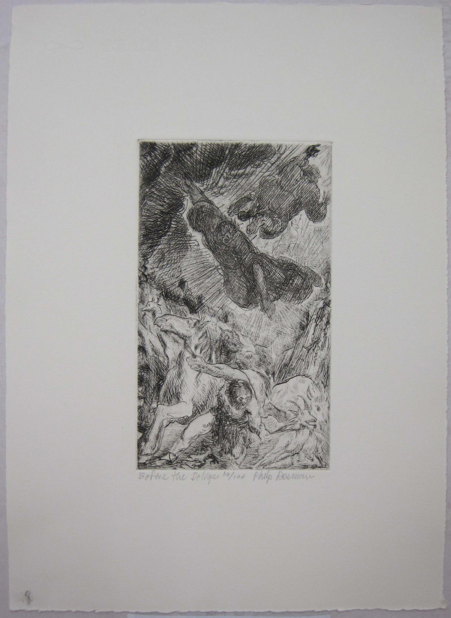 Inscribed lower left, in graphite: "Before the Deluge 14/100"; lower left corner: "8"