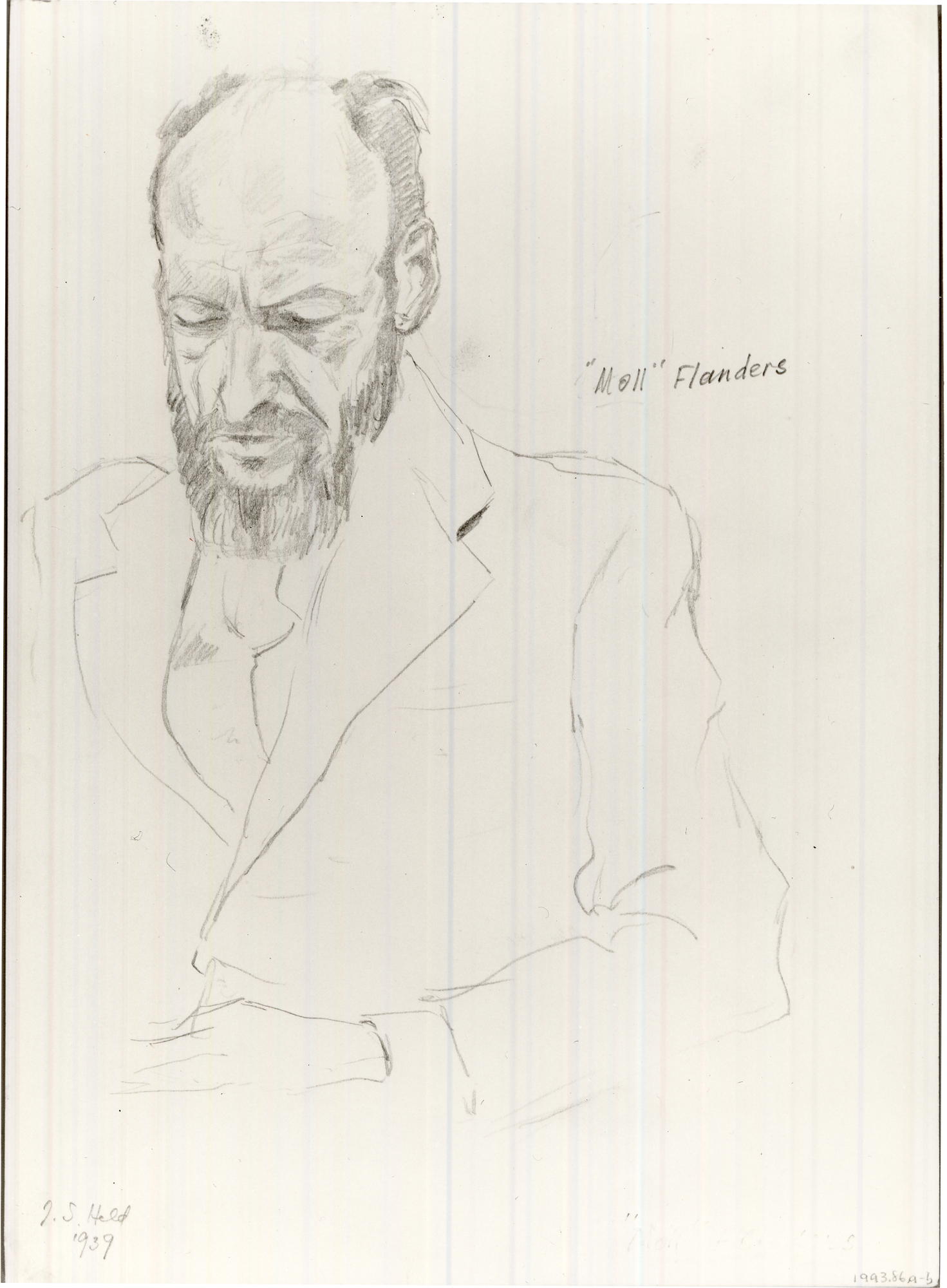 Julius S. Held (American, born Germany, 1905–2002). Milton Lowenthal (recto); "Moll" Flanders (verso), 1939. Graphite on wove paper, sheet: 13 7/8 x 9 7/8 in. (35.2 x 25.1 cm). Brooklyn Museum, Gift of the artist, 1993.86a-b. © Estate of Julius S. Held. (Photo: Brooklyn Museum)