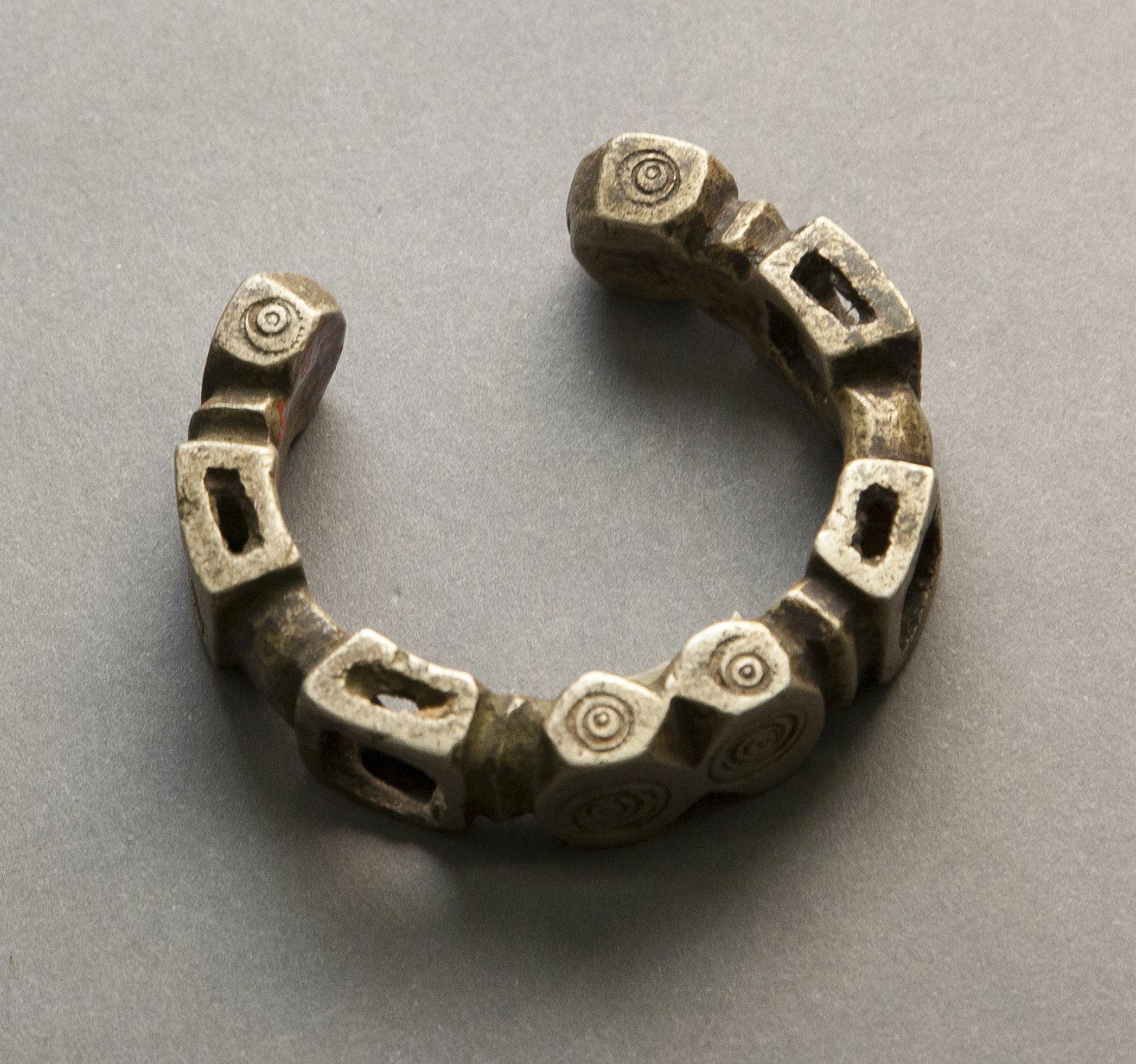 Nupe. Bracelet, 19th or 20th century. White metal alloy, 2 5/8 x 2 3/4 in. Brooklyn Museum, Gift of Mr. and Mrs. Arnold Syrop, 1993.183.4. (Photo: Brooklyn Museum)