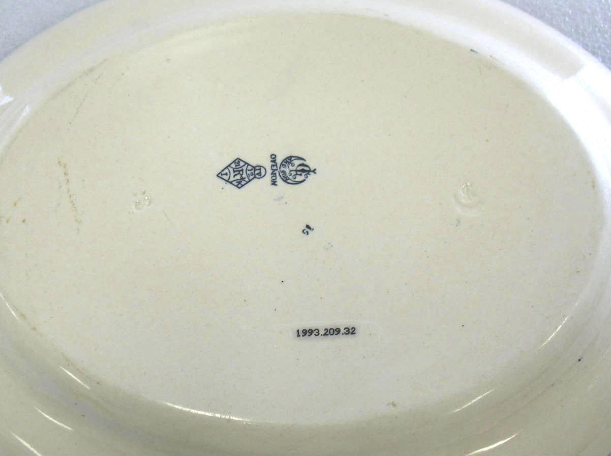 James Gildea. Oval Platter; Overton Pattern, 1883. Glazed earthenware with transfer printed decoration, 1 5/8 x 13 1/4 x 10 1/2 in. (3.3 x 33.6 x 2.6 cm). Brooklyn Museum, Gift of Paul F. Walter, 1993.209.32. (Photo: Brooklyn Museum)