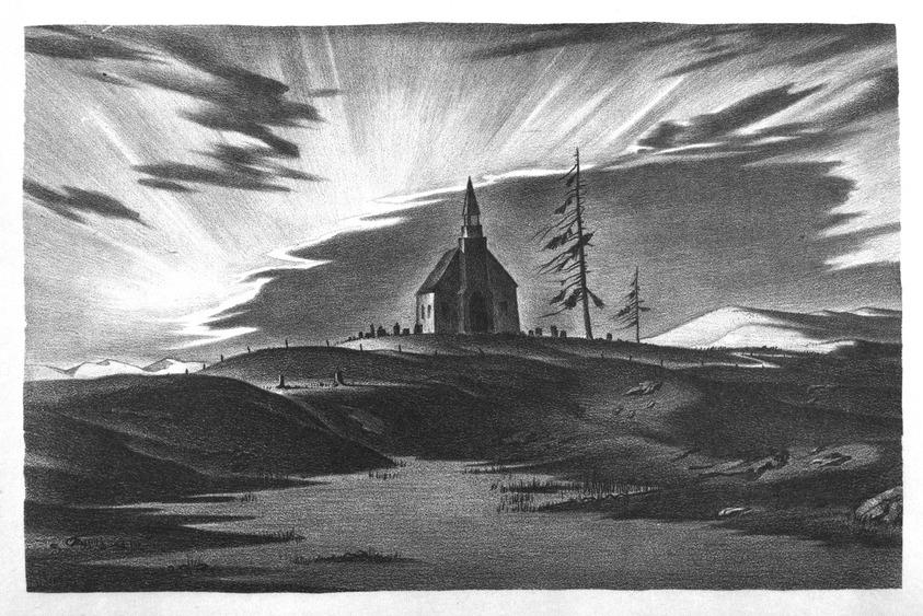 John C. Menihan (American, 1908–1992). Santa Clara, ca. 1936. Lithograph on cream laid paper, Image: 4 7/8 x 8 11/16 in. (12.4 x 22 cm) Sheet: 7 13/16 x 10 13/16 in. (19.9 x 27.5 cm). Brooklyn Museum, Gift of the family of John C. Menihan, 1993.223.2. (Photo: Brooklyn Museum)