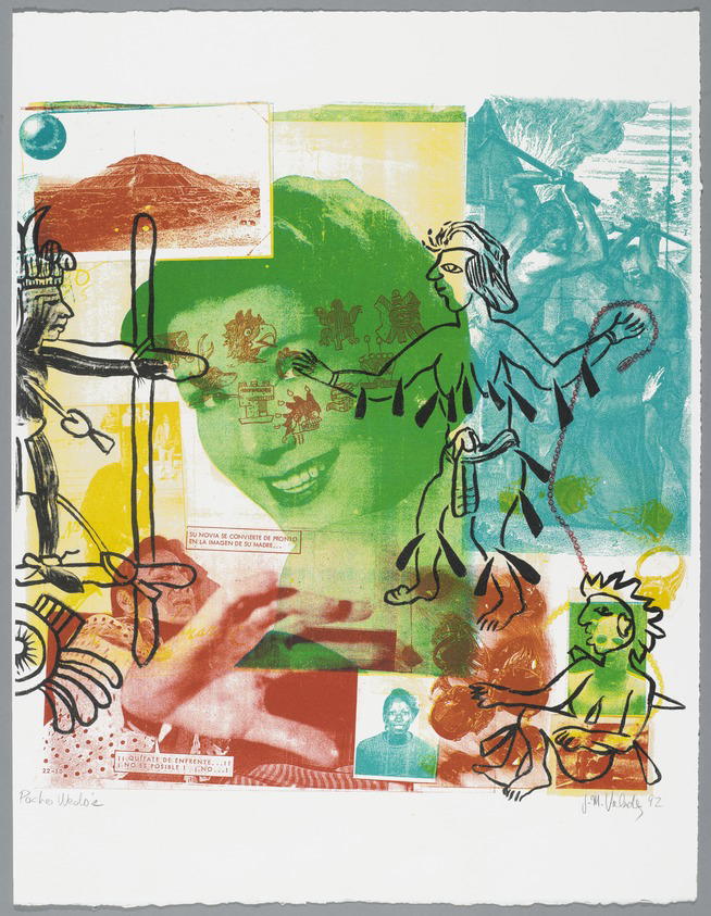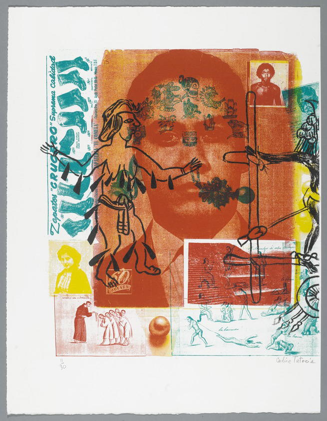 John Valdez (American, born 1951). Codice Tatoo's Pocho Wedos, 1992. Lithograph on paper, sheet (a): 19 1/4 x 14 7/8 in. (48.9 x 37.8 cm) image (a): 14 1/2 x 12 1/2 in. (36.8 x 31.8 cm) sheet (b): 19 1/4 x 14 7/8 in. (48.9 x 37.8 cm) image (b): 15 x 14 1/2 in. (38.1 x 36.8 cm). Brooklyn Museum, Emily Winthrop Miles Fund, 1994.25.6a-b. (Photo: Brooklyn Museum)