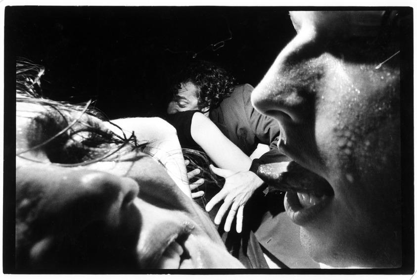 Michael Ackerman (American, born Israel, 1967). Two Couples Dancing at the Roxy, 1991. Gelatin silver print, image: 12 1/4 x 18 3/4 in. (31.1 x 47.6 cm) sheet: 15 7/8 x 19 7/8 in. (40.3 x 50.5 cm). Brooklyn Museum, Purchased with funds given by the Horace W. Goldsmith Foundation, Harry Kahn, and Mrs. Carl L. Selden, 1994.128.1. (Photo: Brooklyn Museum)