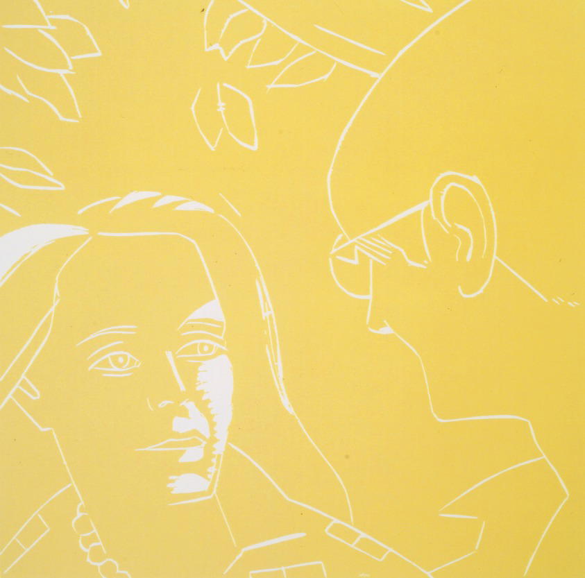 Alex Katz (American, born 1927). A Tremor in the Morning: Ada, Dino, 1986. Woodcut in color, Sheet: 20 1/4 x 19 3/4 in. (51.4 x 50.2 cm) Image: 11 7/8 x 11 7/8 in. (30.2 x 30.2 cm) Mat: 22 1/4 x 21 7/8 in. (56.5 x 55.5 cm). Brooklyn Museum, Gift of the artist, 1996.97.42. (Photo: Brooklyn Museum)