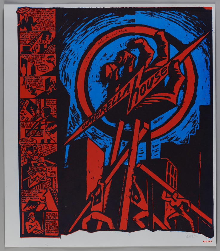 Seth Tobocman. Umbrella House, 1988–1992. Silkscreen, sheet: 23 x 20 in. (58.4 x 50.8 cm) image: 21 7/8 x 18 1/4 in. (55.6 x 46.4 cm). Brooklyn Museum, Emily Winthrop Miles Fund, 1996.188.14. (Photo: Brooklyn Museum)