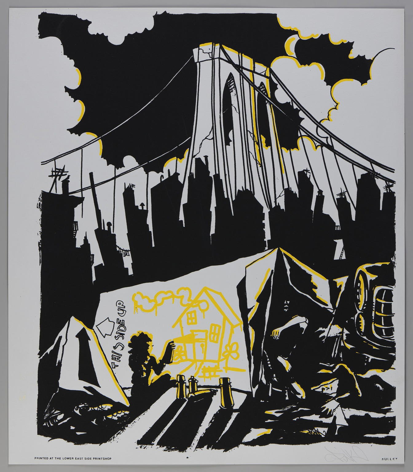 Sandra Fabara aka Lady Pink (American, born Ecuador, 1964). Under the Brooklyn Bridge, 1988–1992. Screenprint, sheet: 23 x 20 in. (58.4 x 50.8 cm) image: 23 x 20 in. (58.4 x 50.8 cm). Brooklyn Museum, Emily Winthrop Miles Fund, 1996.188.23. © Sandra Fabara, aka Lady Pink. (Photo: Brooklyn Museum)