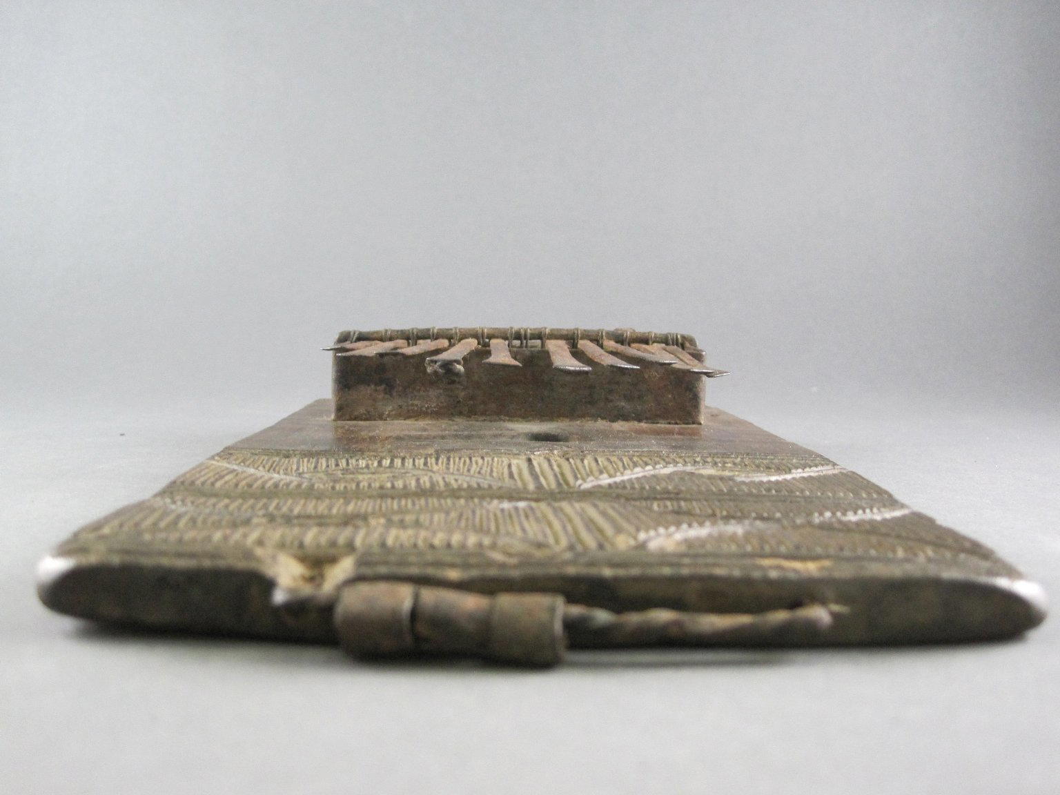 Chokwe. Sanza (Thumb Piano), 20th century. Wood, metal (iron?) keys, 5 3/4 x 3 1/4 x 3 in. (14.6 x 8.3 x 7.6 cm). Brooklyn Museum, Gift of Mr. and Mrs. Lee Lorenz, 1996.202.9. (Photo: Brooklyn Museum)