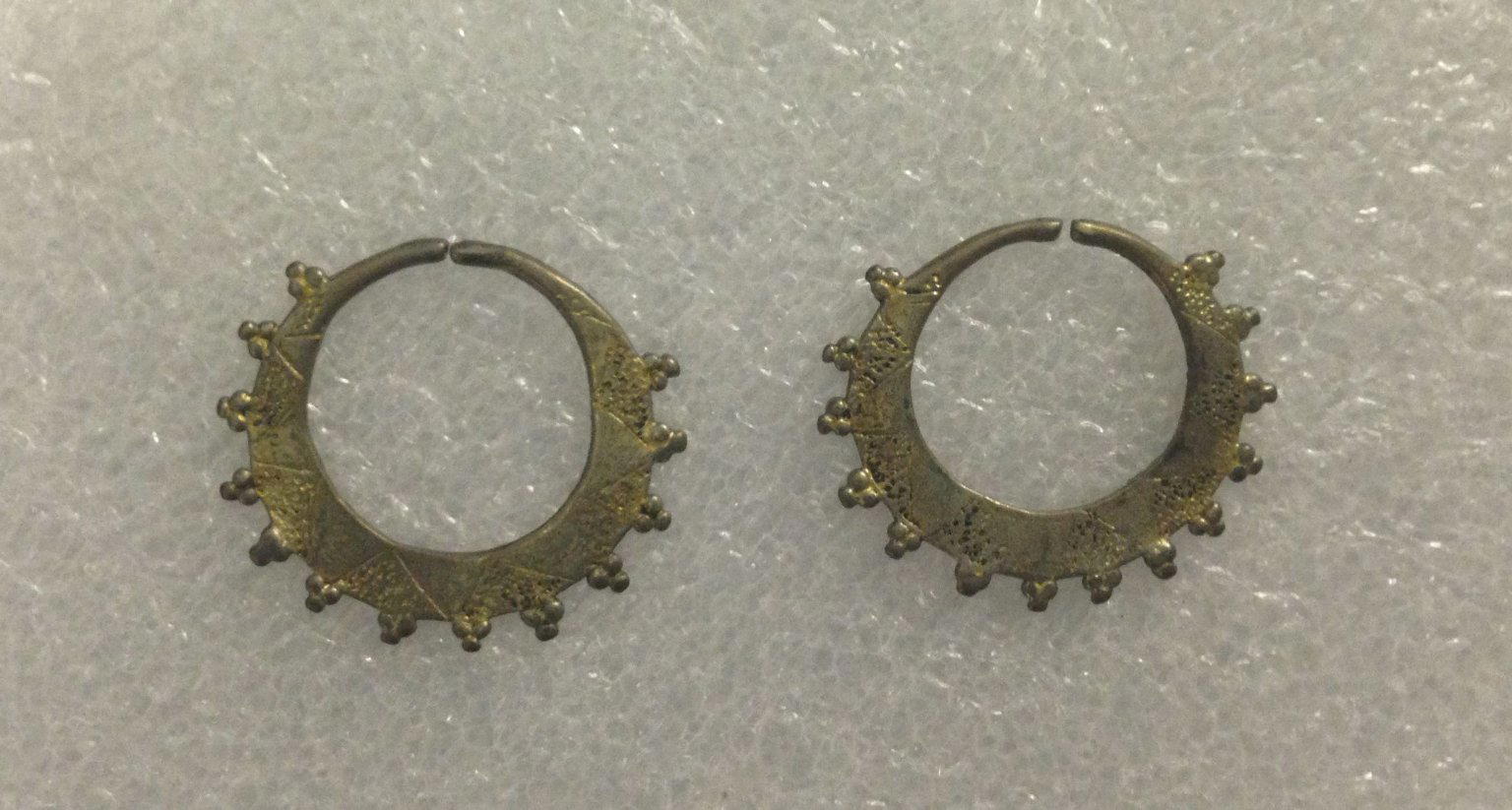Amhara. Pair of Earrings, mid–20th century. Copper alloy, 1 1/2 x 1 7/8 in. (3.8 x 4.8 cm). Brooklyn Museum, Gift of Donna Klumpp Pido, 1996.204.20a-b. (Photo: Brooklyn Museum)