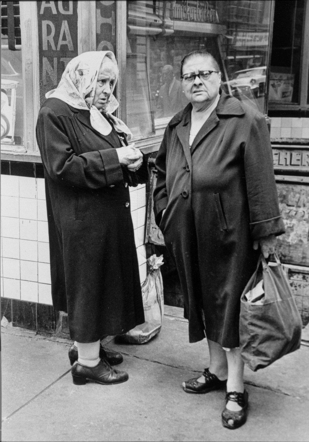 Vivian Cherry (American, 1920–2019). Lower East Side N.Y.C (Two Elderly Women on Street), ca. 1950s. Gelatin silver print, 9 x 13 in. (22.9 x 33.0 cm). Brooklyn Museum, Gift of Steven Schmidt, 1996.241.2a-c. © Vivian Cherry. (Photo: Brooklyn Museum)