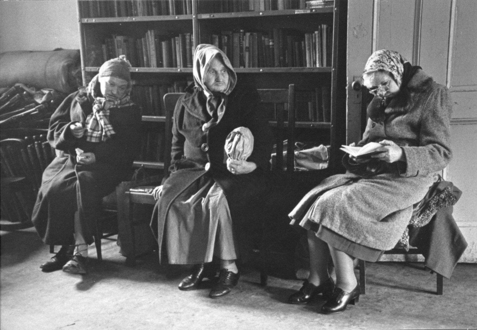 Vivian Cherry (American, 1920–2019). Catholic Workers (Three Women Seated in the Headquaters on Newspaper), 1955. Gelatin silver print (vintage), 6 7/8 x 10 in. (17.5 x 25.3 cm). Brooklyn Museum, Gift of Steven Schmidt, 1996.241.10. © Vivian Cherry. (Photo: Brooklyn Museum)