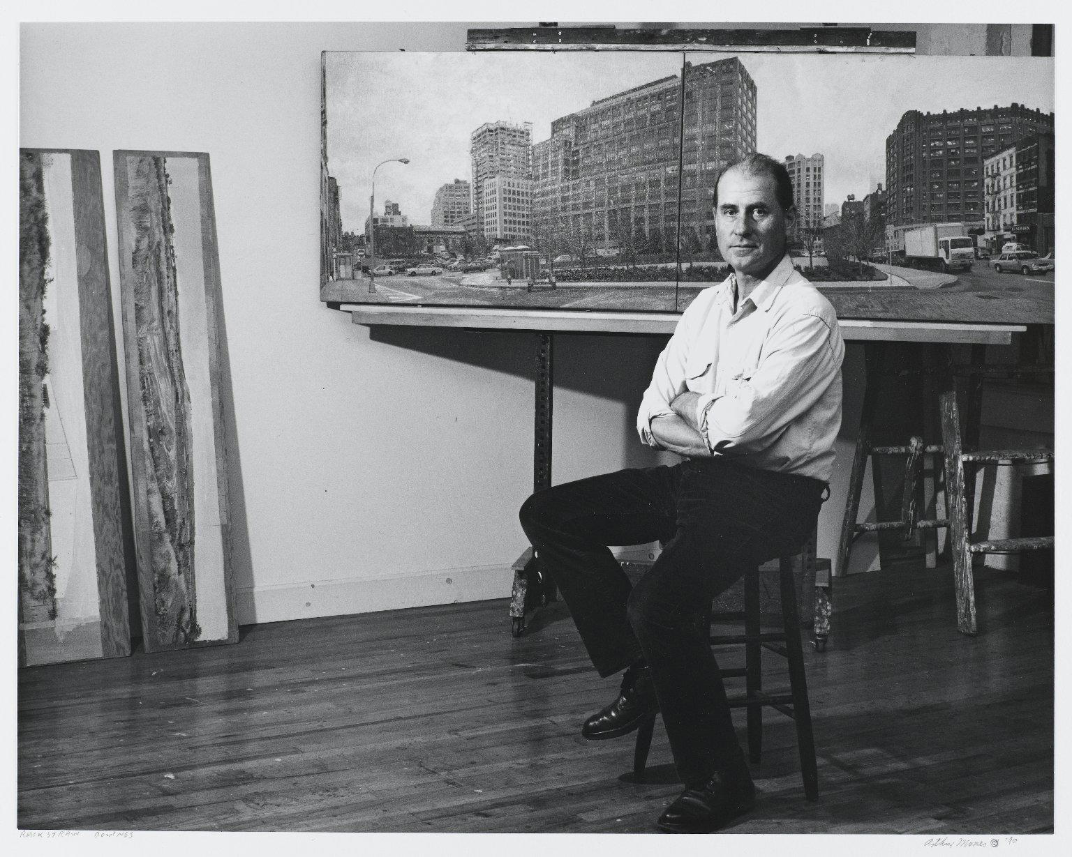 Arthur Mones (American, 1919–1998). Rackstraw Downes, 1990. Gelatin silver print, sheet: 10 3/4 x 14 in. (27.2 x 35.6 cm) image: 10 1/2 x 13 1/2 in. (26.7 x 34.5 cm). Brooklyn Museum, Gift of the artist, 1997.162.19. © Estate of Arthur Mones. (Photo: Brooklyn Museum)