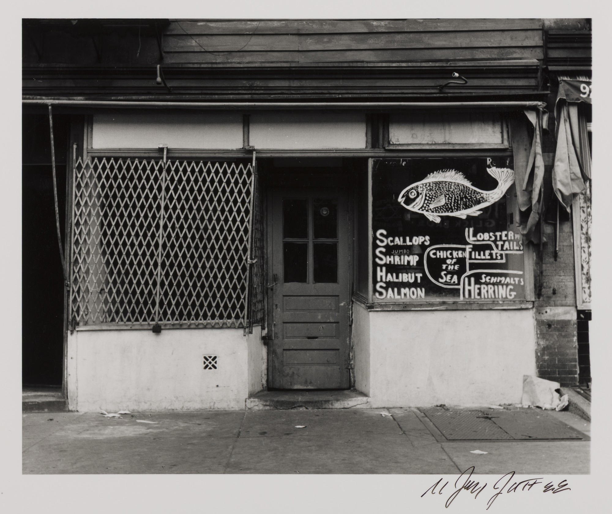 N. Jay Jaffee (American, 1921–1999). Fish Market Storefront (Blake Avenue), 1951; printed 1995. Selenium-toned gelatin silver print, image: 4 3/8 x 5 7/16 in. (11.1 x 13.8 cm) sheet: 9 15/16 x 8 in. (25.2 x 20.3 cm). Brooklyn Museum, Gift of Paula W. Hackeling, 1997.164.28. © The N. Jay Jaffee Trust. (Photo: Brooklyn Museum)