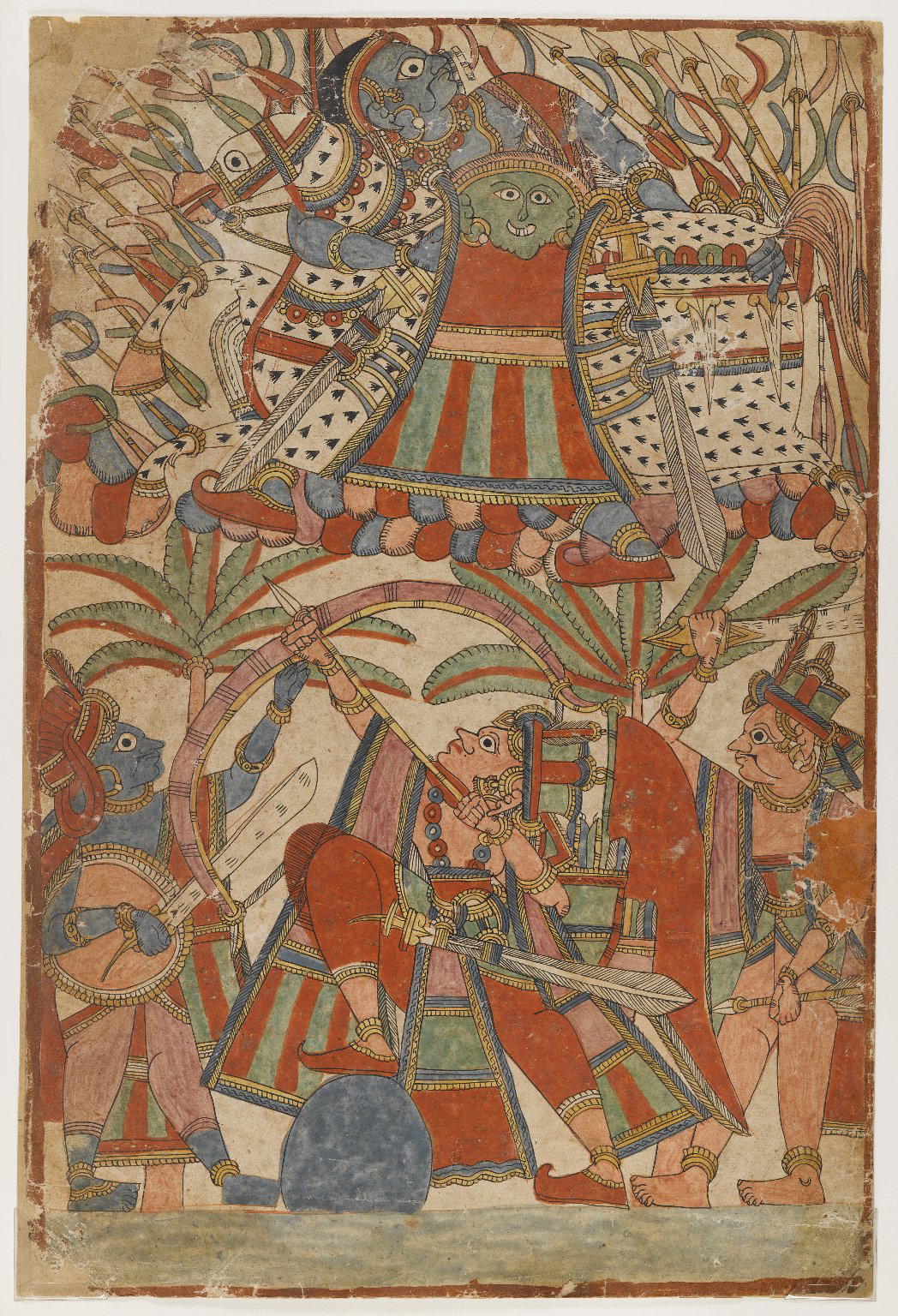 Babruvahana Shoots at Arjuna, page from a Mahabharata Series, ca. 1850. Opaque watercolor on paper, 18 5/8 x 12 1/2 in. (47.3 x 31.8 cm). Brooklyn Museum, Purchased with funds given by Dr. Bertram H. Schaffner, 1999.19. (Photo: Brooklyn Museum)