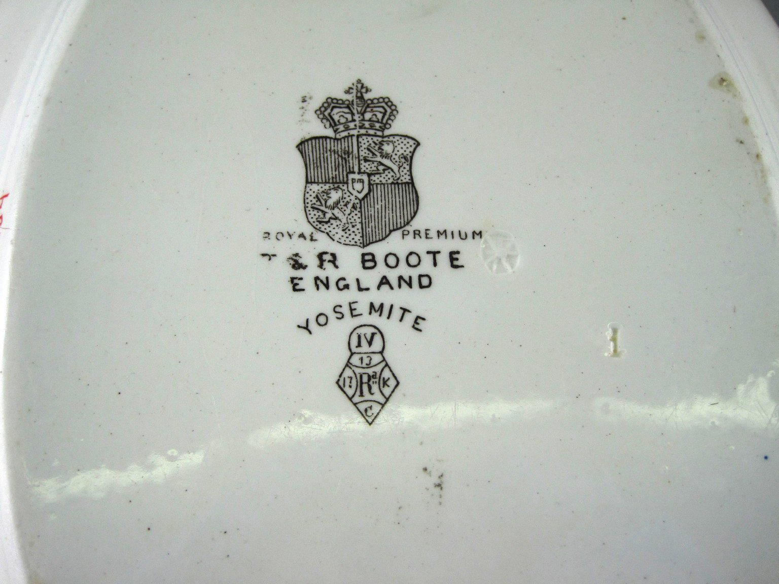 Underside, brown transfer: " [COMPANY LOGO] ROYAL PREMIUM/ T& R BOOTE/ ENGLAND/ YOSEMITE/[REGISTRATION MARK;" to one side, impressed: "[potters mark]/1"