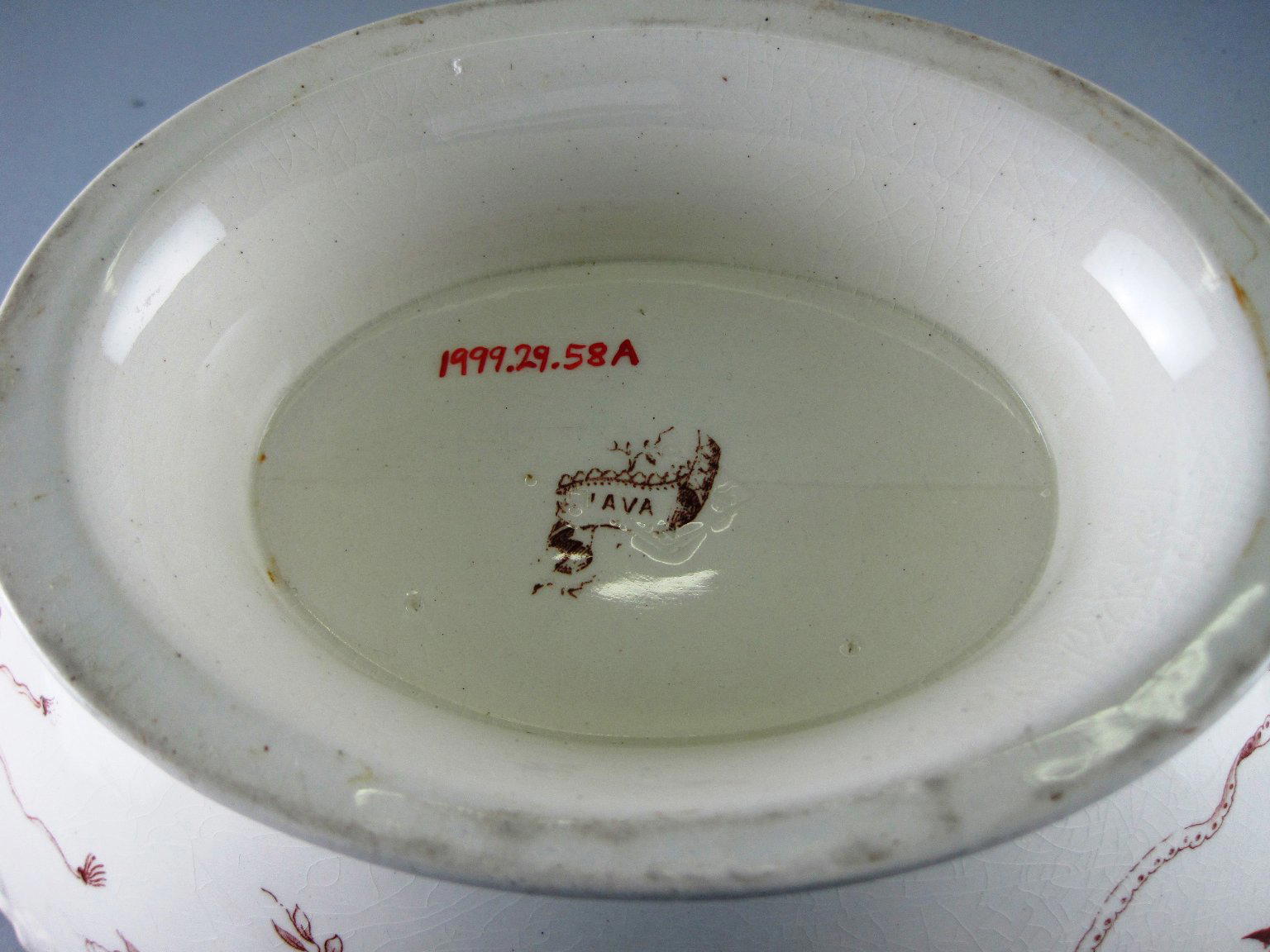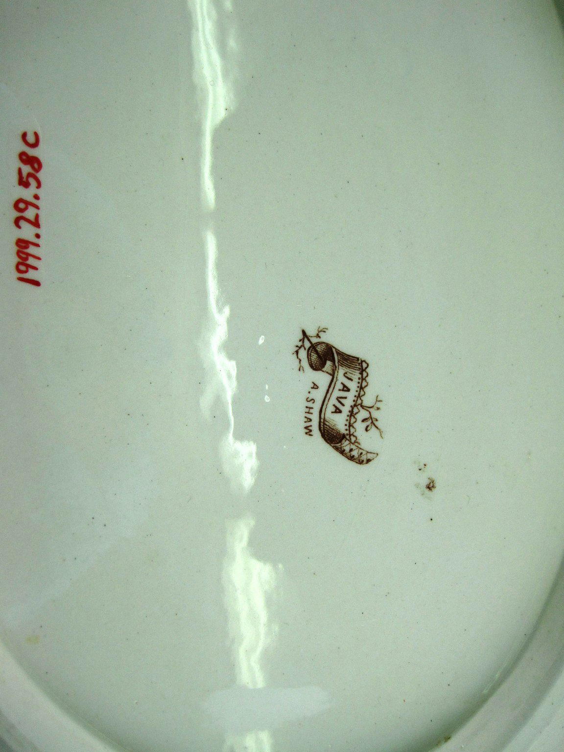 Underside, printed in brown: (a) Tureen:' [banner] Java'; (c) Stand: printed in brown, underside: '[banner] Java/ A. Shaw.'