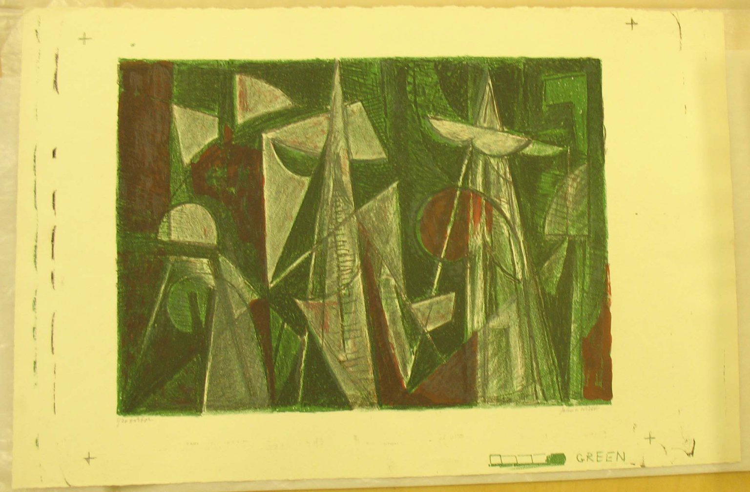 Inscribed lower left, in graphite:"1/30 Harbor"; lower right, in graphite: "John v. Wicht"; lower right, in green pencil, "GREEN"
