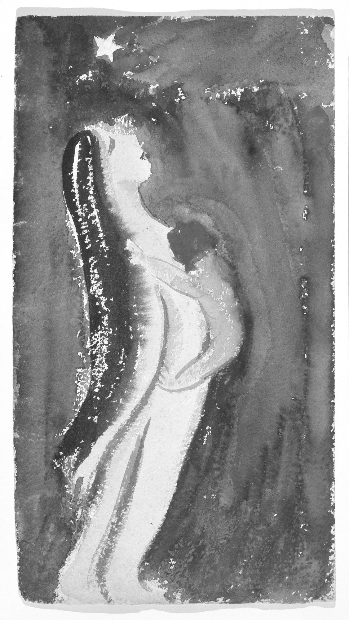 Consuelo Kanaga (American, 1894–1978). [Untitled] (Nude Mother and Child), Watercolor on paper, 15 1/4 x 8 1/4 in. (38.7 x 21.0 cm). Brooklyn Museum, Gift of Wallace B. Putnam, 81.318.11. copyright transferred to Brooklyn Museum by the Estate of Wallace Putnam. (Photo: Brooklyn Museum)