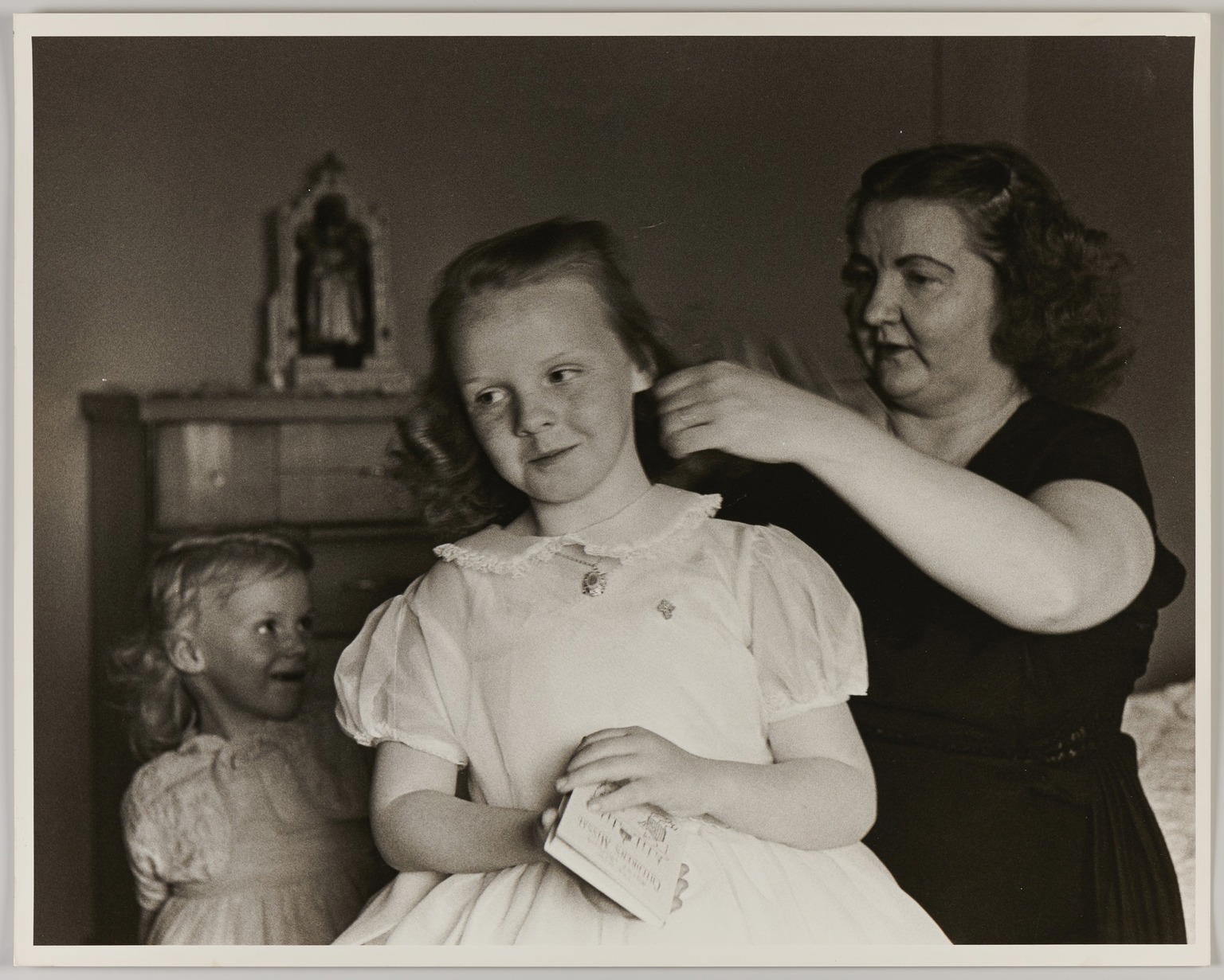 Larry Fink (American, born 1941). Confirmation Day (Mother and Two Daughters), ca. early 1960s. Gelatin silver print, image: 15 1/8 x 19 3/8 in. (38.4 x 49.2 cm) sheet: 16 x 19 7/8 in. (40.6 x 50.5 cm). Brooklyn Museum, Gift of Joan Snyder, 1999.128.1. © Larry Fink. (Photo: Brooklyn Museum)