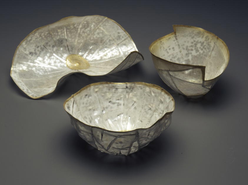 So, Jin-Sook (Korean, born 1950). Floral Form, 2000. Steel mesh and thread with painted and electroplated gold and silver decoration, 3 x 4 3/8 in. (7.6 x 11.1 cm). Brooklyn Museum, Anonymous gift in honor of Amy G. Poster, 2001.49.3. (Photo: Brooklyn Museum)
